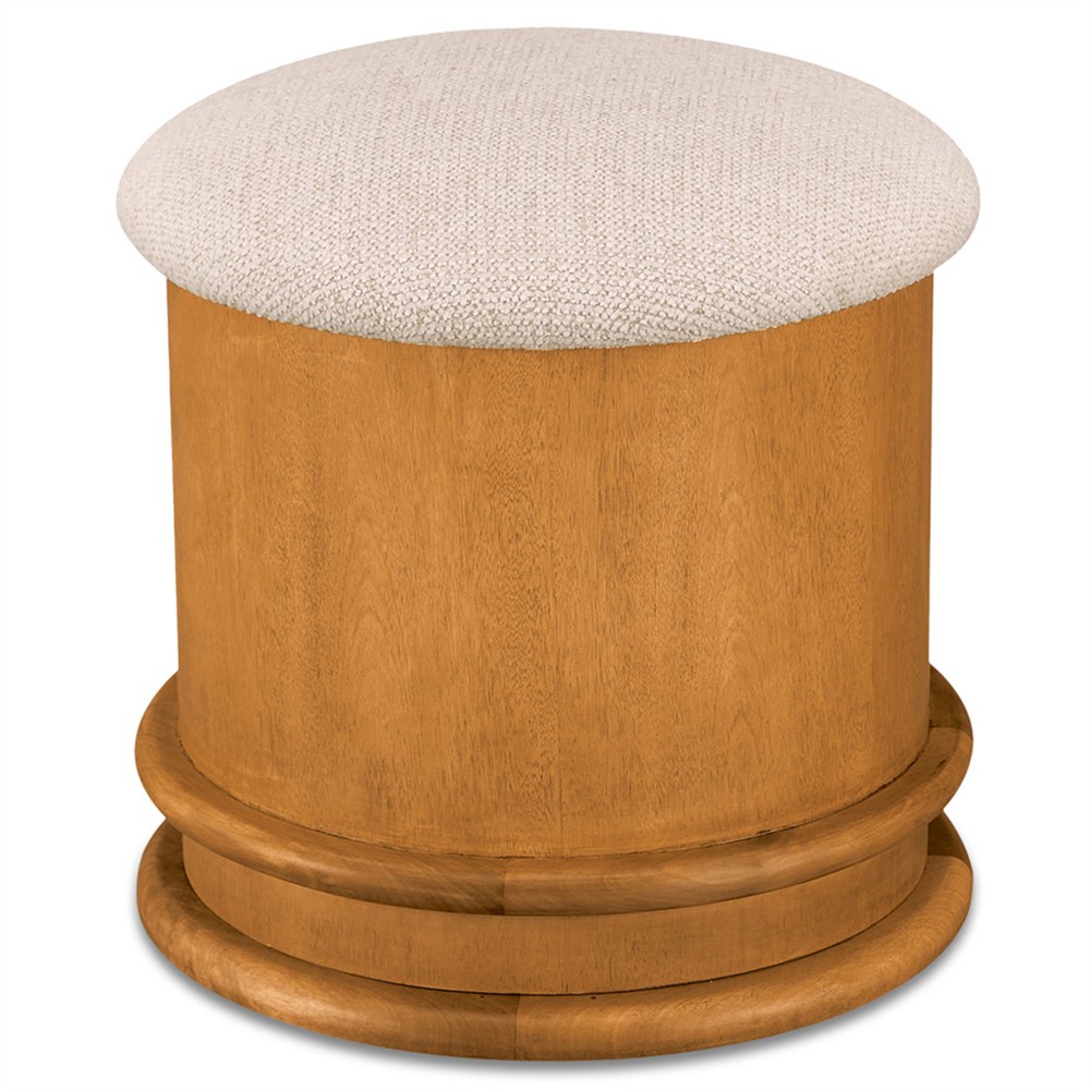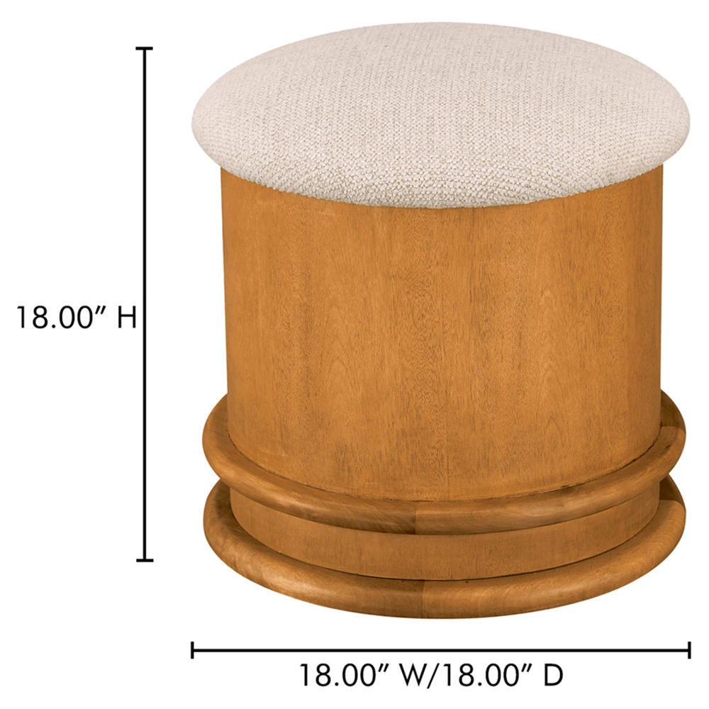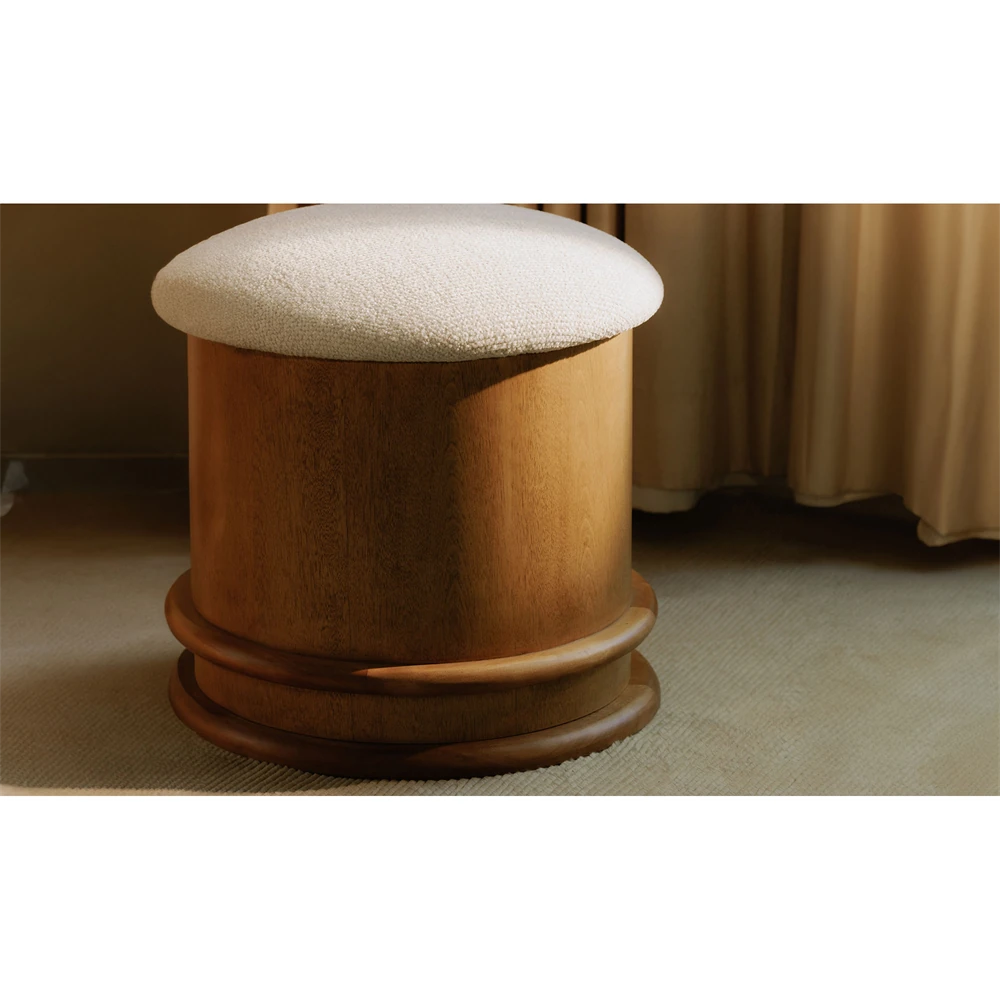 Westport Modern Round Beige Wool Upholstered Brown Wood Stool