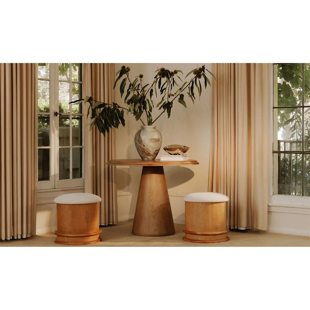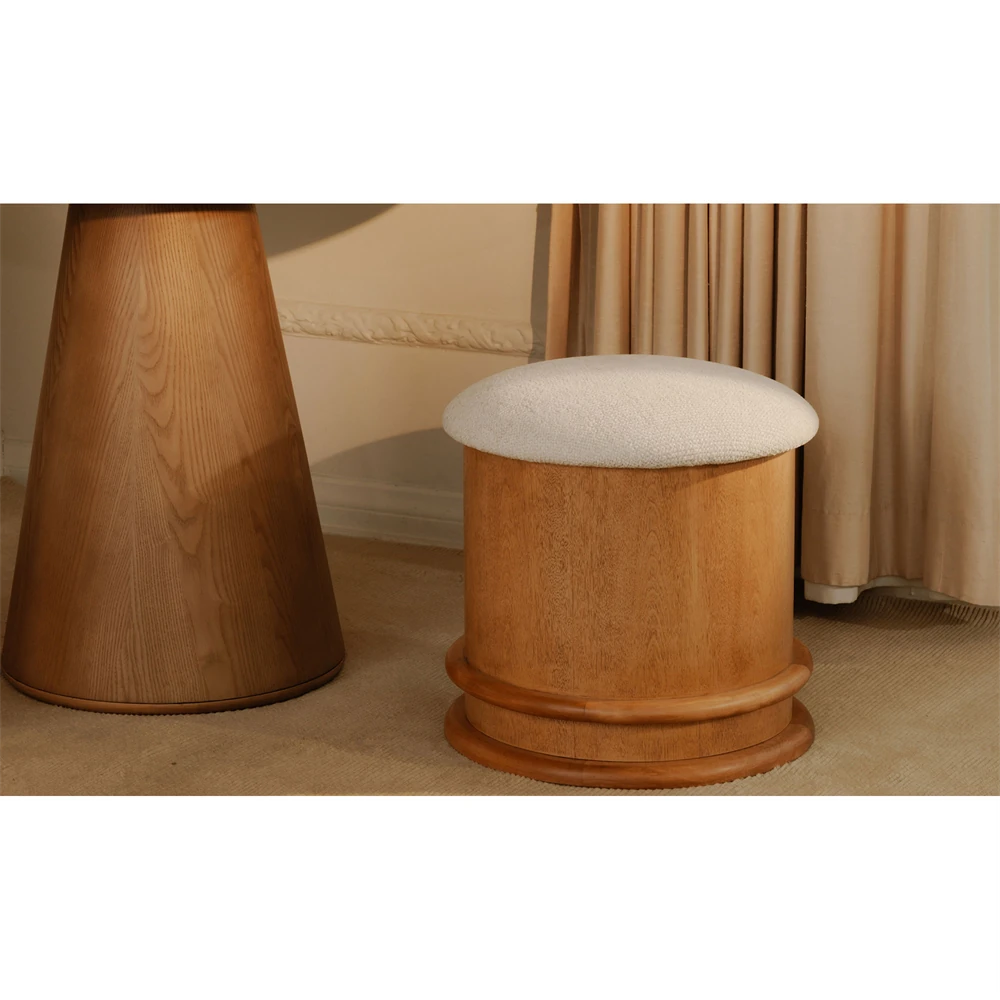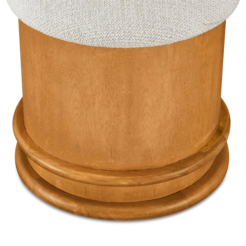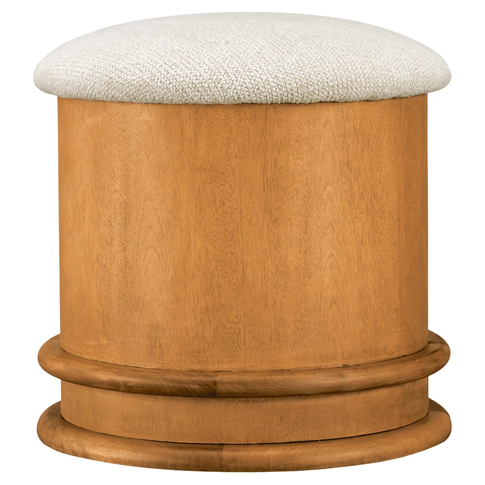 Westport Modern Round Beige Wool Upholstered Brown Wood Stool