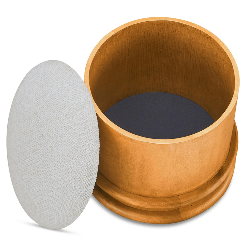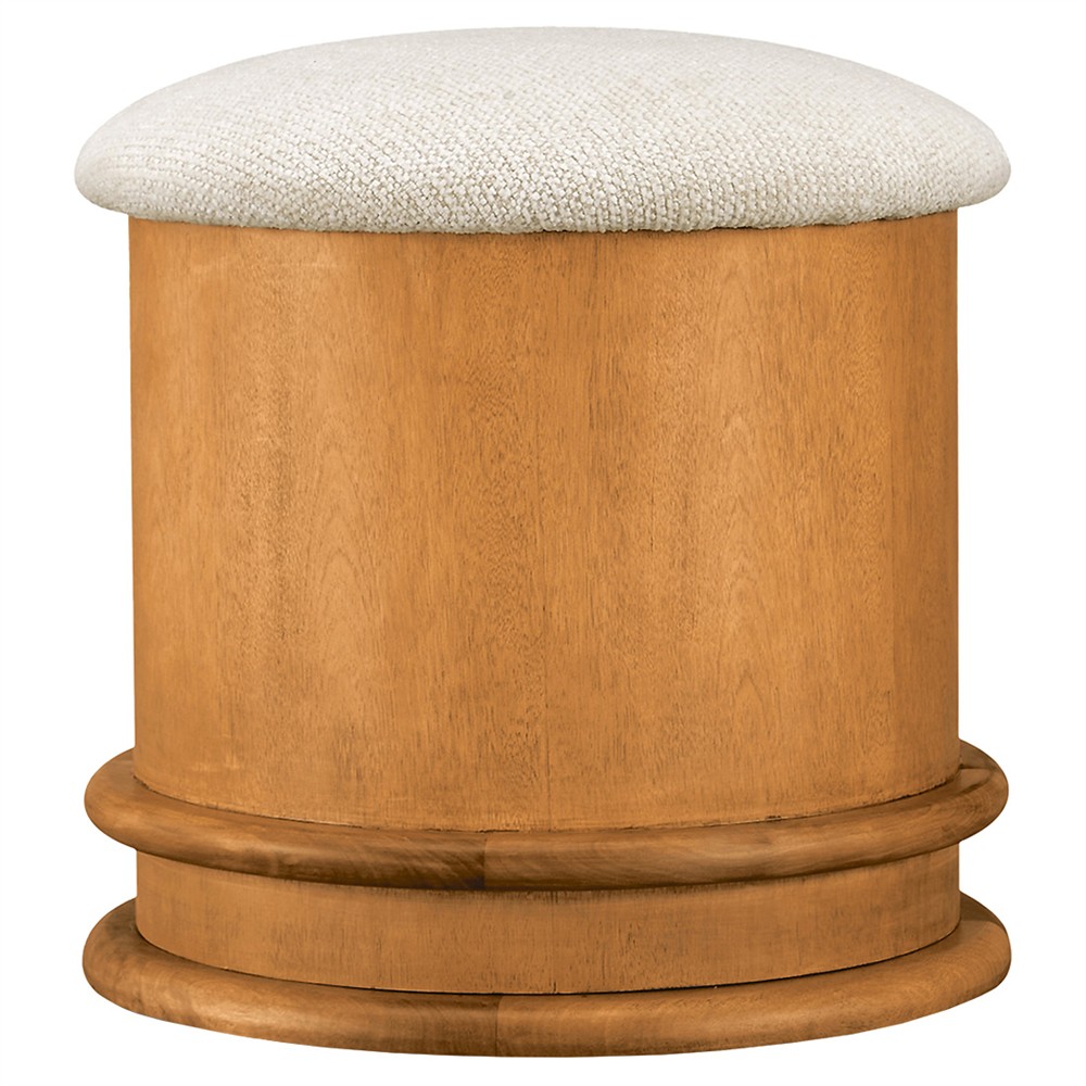 Jonathan Modern Cream Chennile Brown Birch Round Storage Ottoman