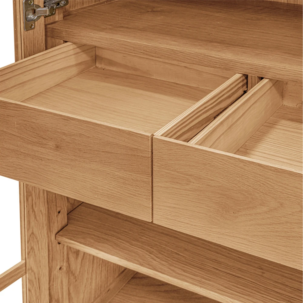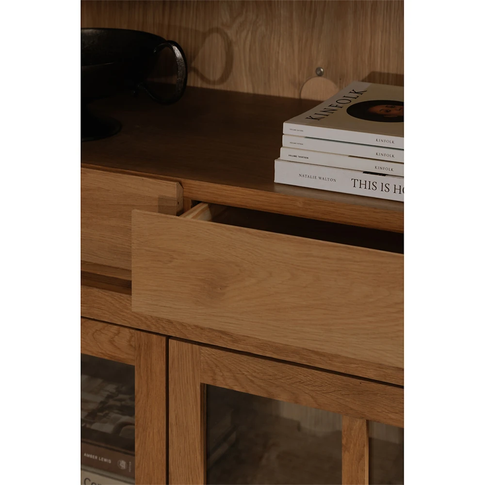 • Constructed from solid oak wood, oak veneer and glass