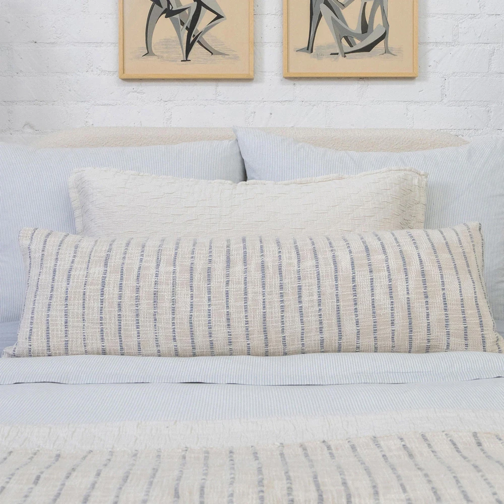 • Callista Coastal Beach Blue Cotton Lumbar Pillow - 16x36|Kathy Kuo Home