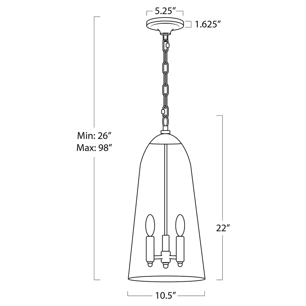 • Max Hanging Length: 98"; Canopy: 5.25" Round; Cord Length: 10' Clear