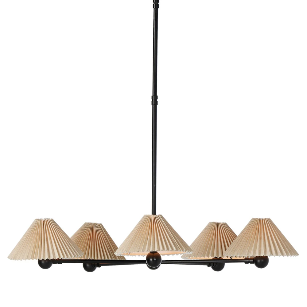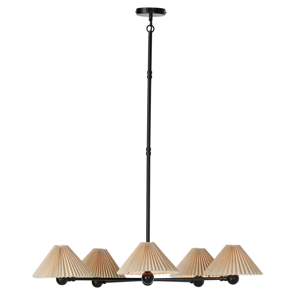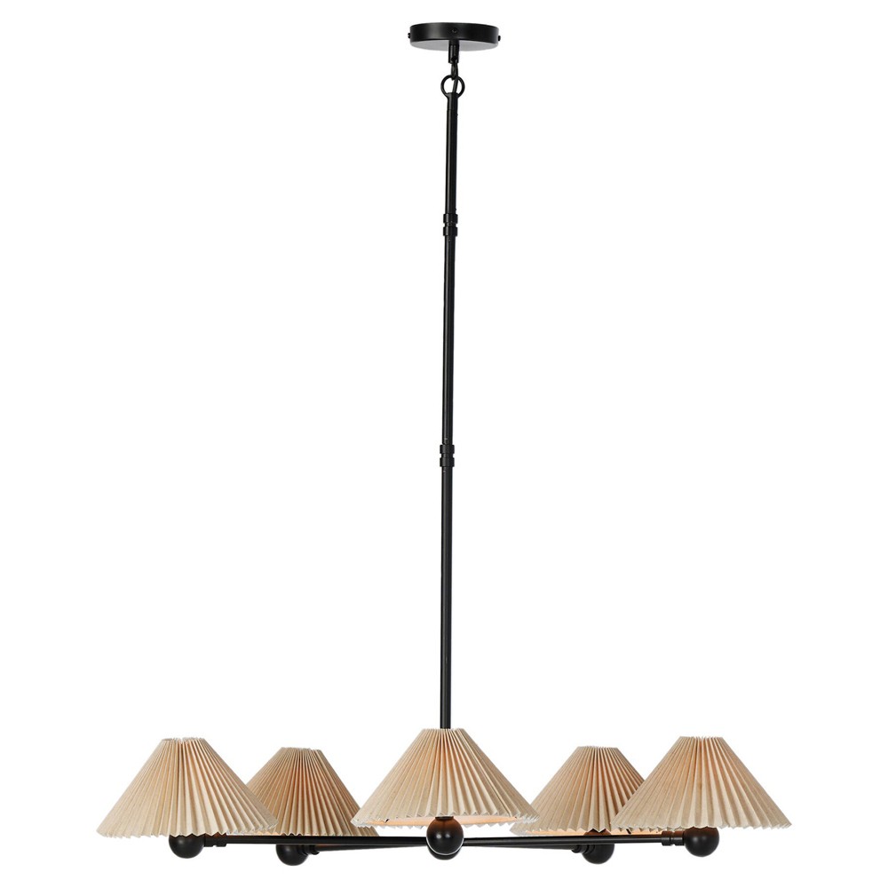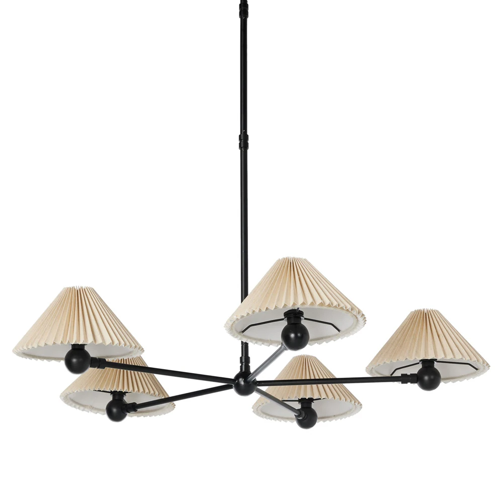 Mirelle Traditional Pleated Shade Black Iron 5 Light Chandelier