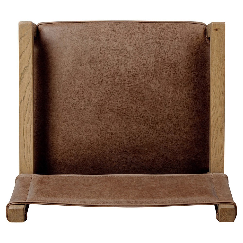 • Features a light solid oak frame paired with a top-grain leather seat and back
