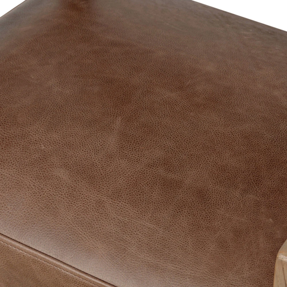 • Upholstered in cigar brown top grain leather; Filling in body: 90% polyurethane foam pad and 10% polyester fiber batting