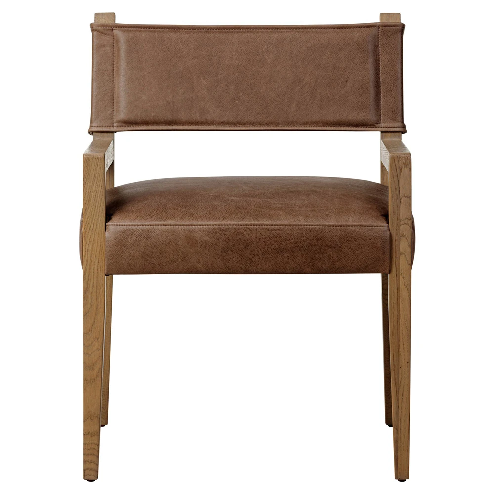 Ely Rustic Lodge Cigar Brown Leather Light Oak Wood Dining Arm Chair