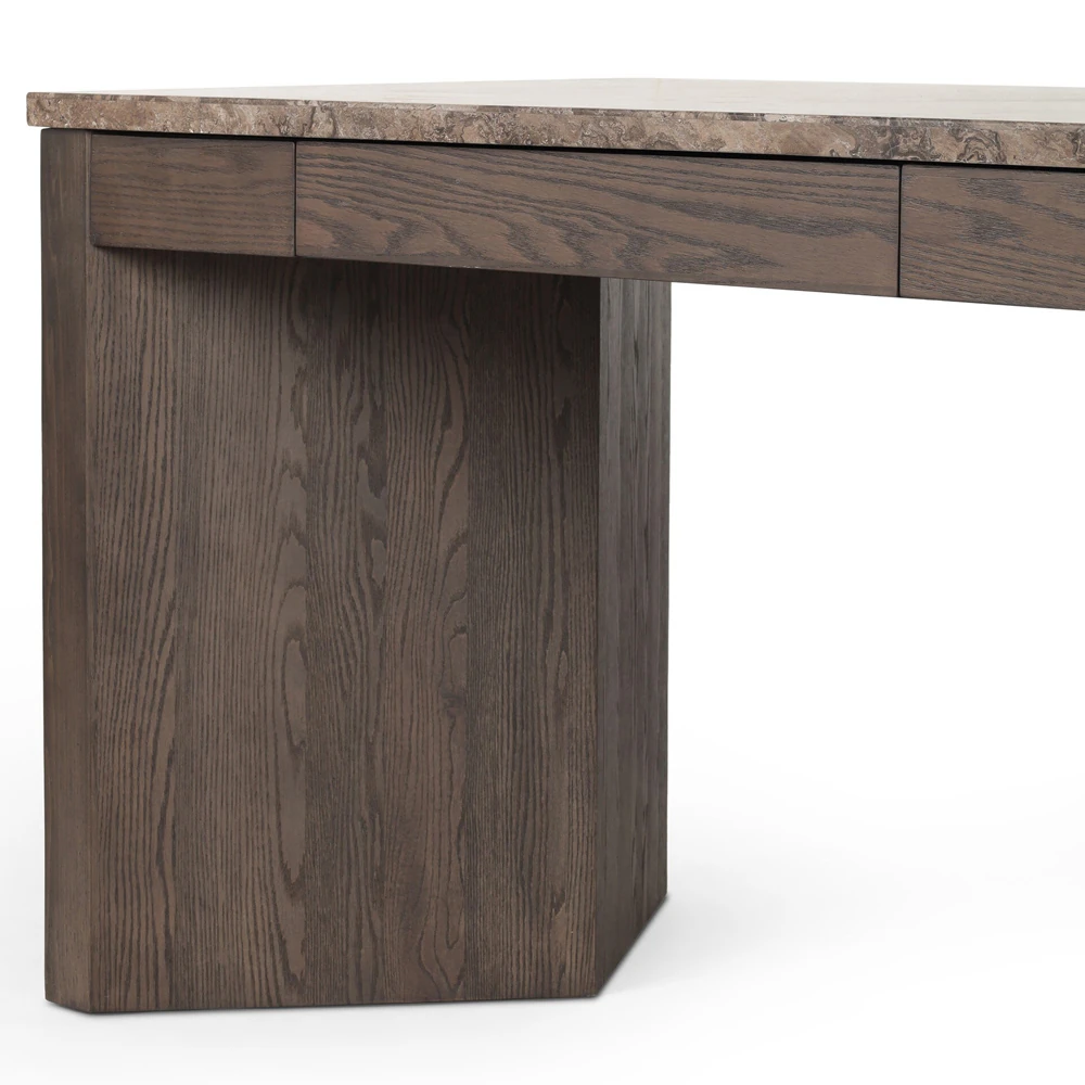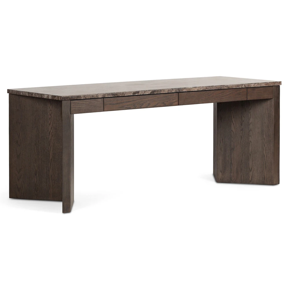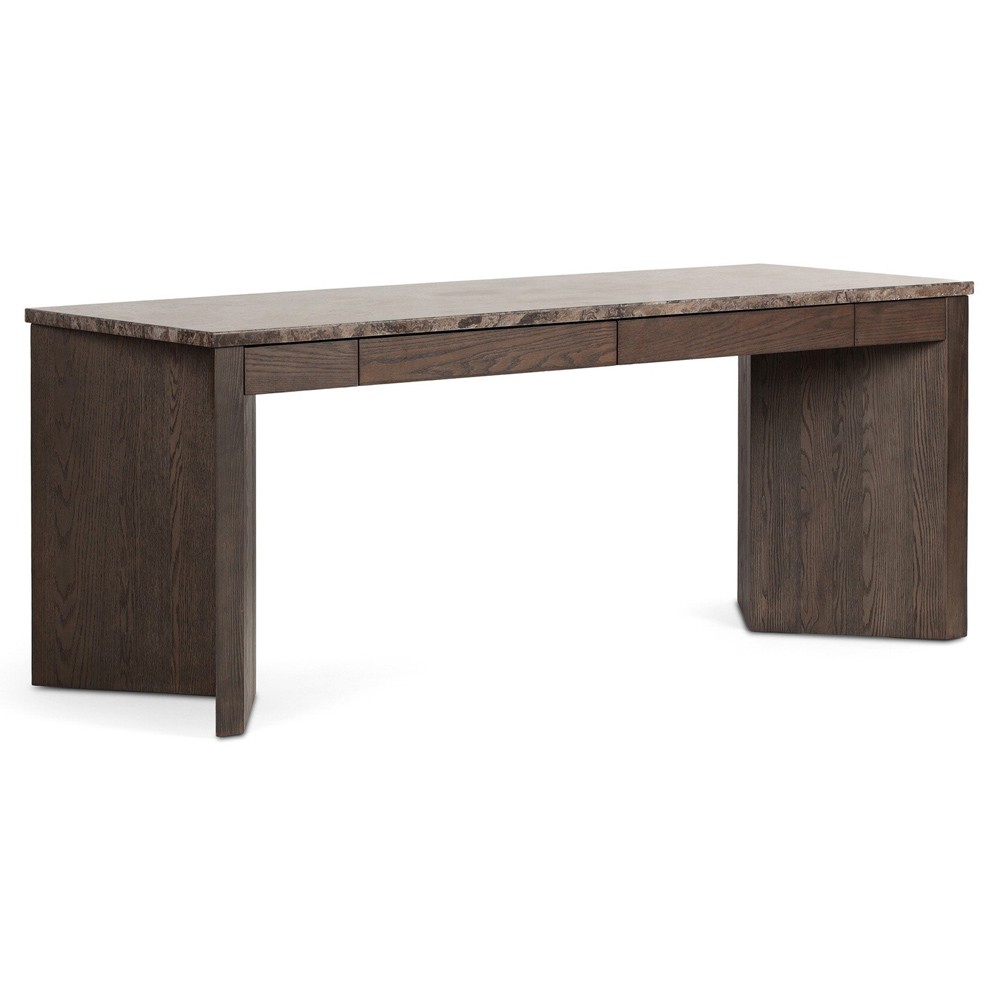 Klement Modern Classic Grey Marble Brown Oak Rectangular Desk