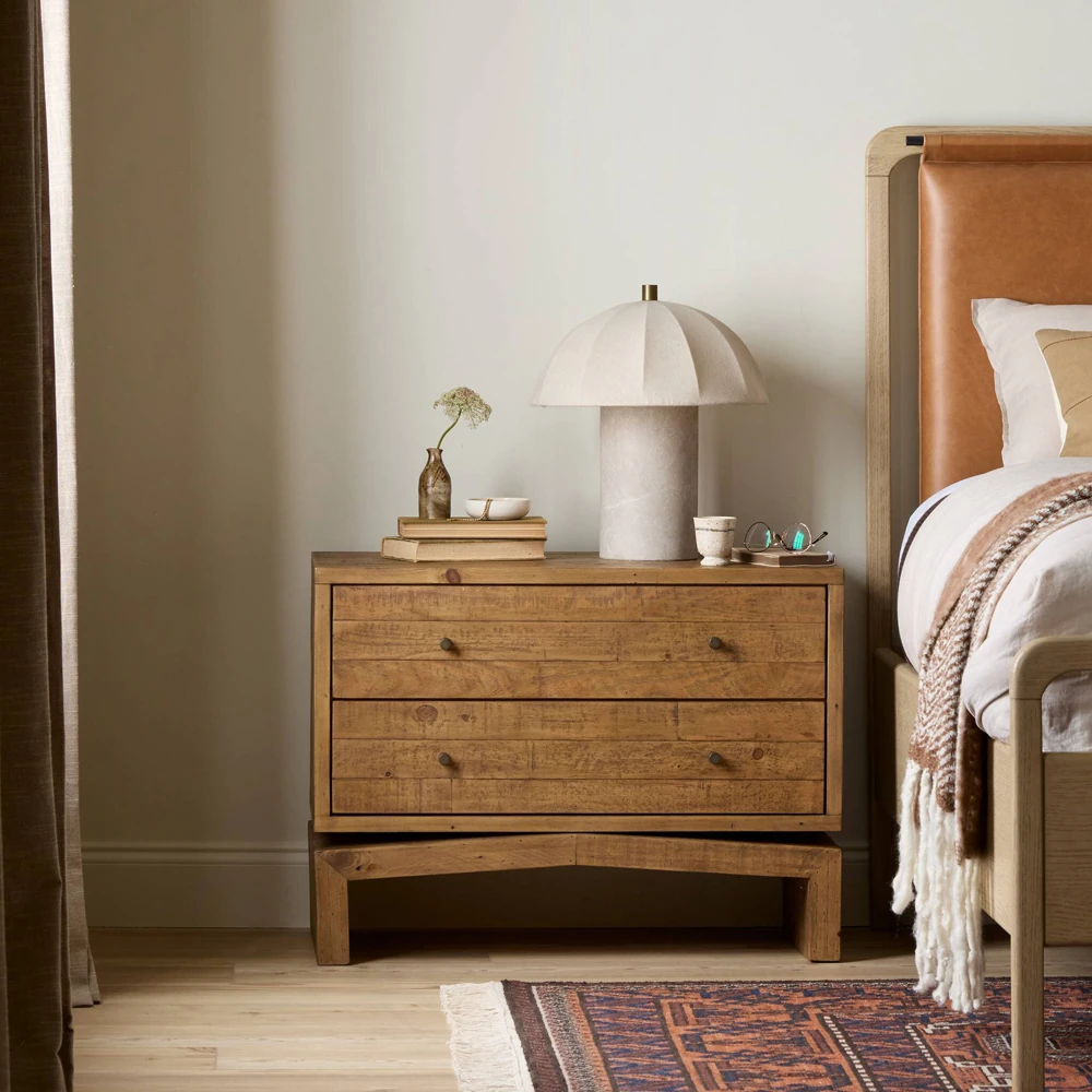 • Benedick Modern Classic Sand Beige Oak Wide Nightstand|Kathy Kuo Home