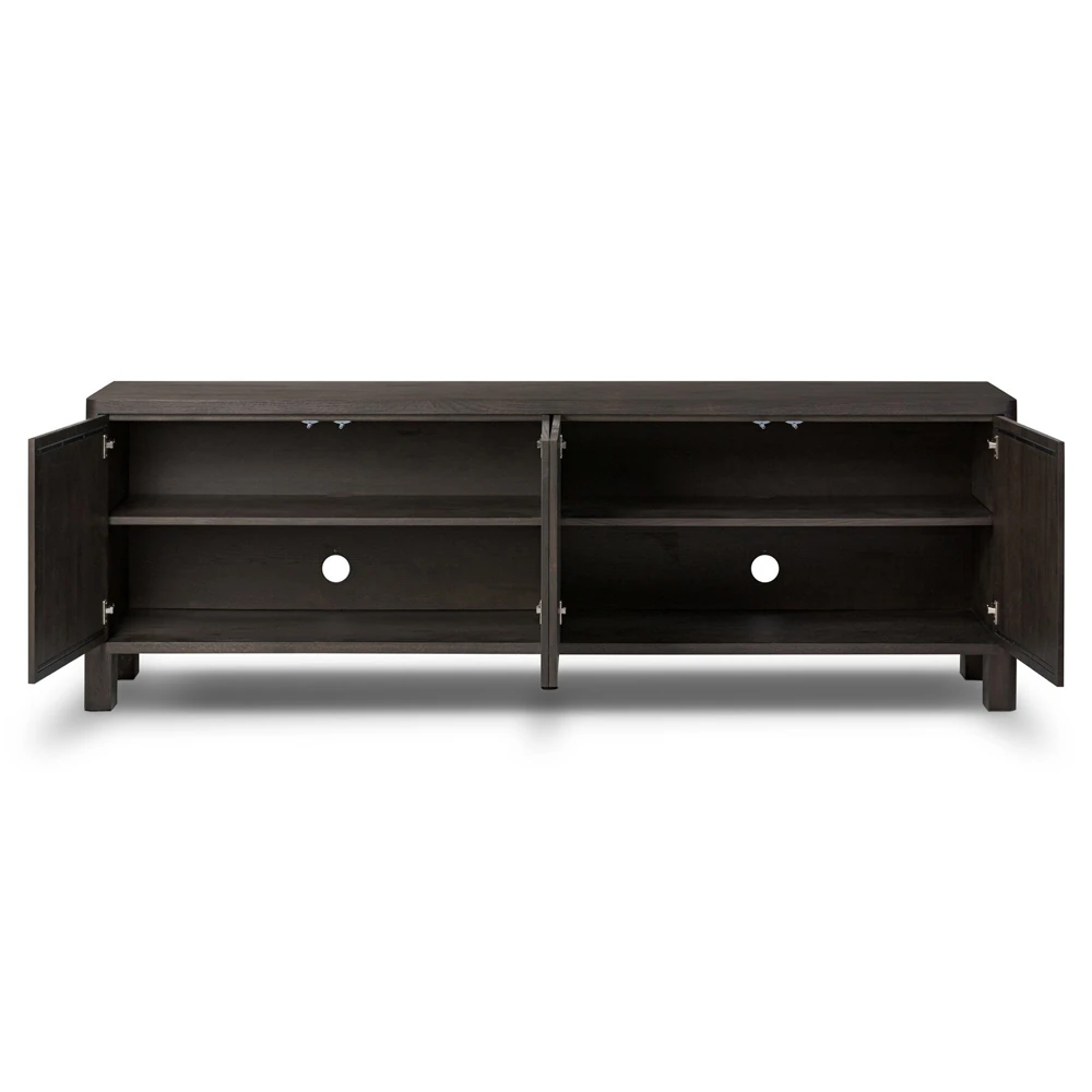 Daphne Mid Century Dark Acacia Wood Woven Cane Rattan 4 Door Media Cabinet - 68"W