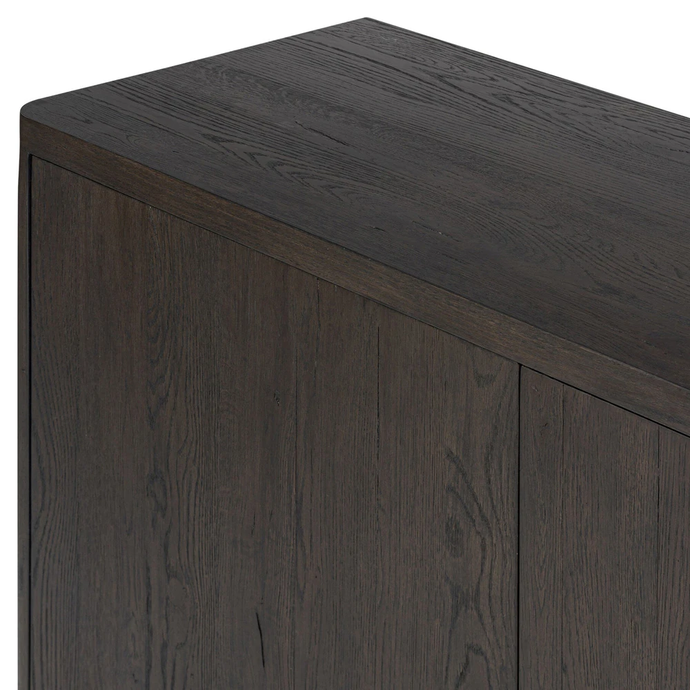 Casandra Updated Traditional Charcoal Oak Bronze Metal Media Cabinet - 83"