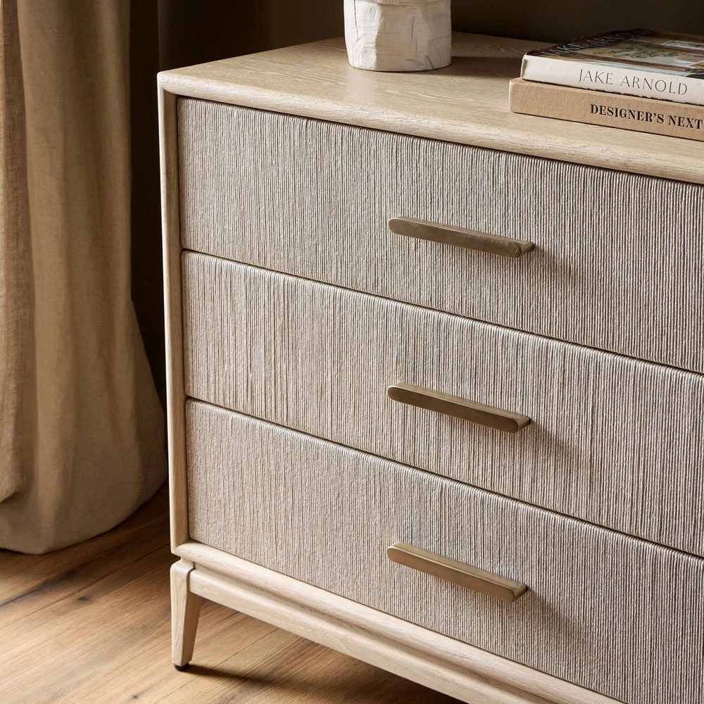 • Features a 6 soft close drawers wrapped in woven paper cord