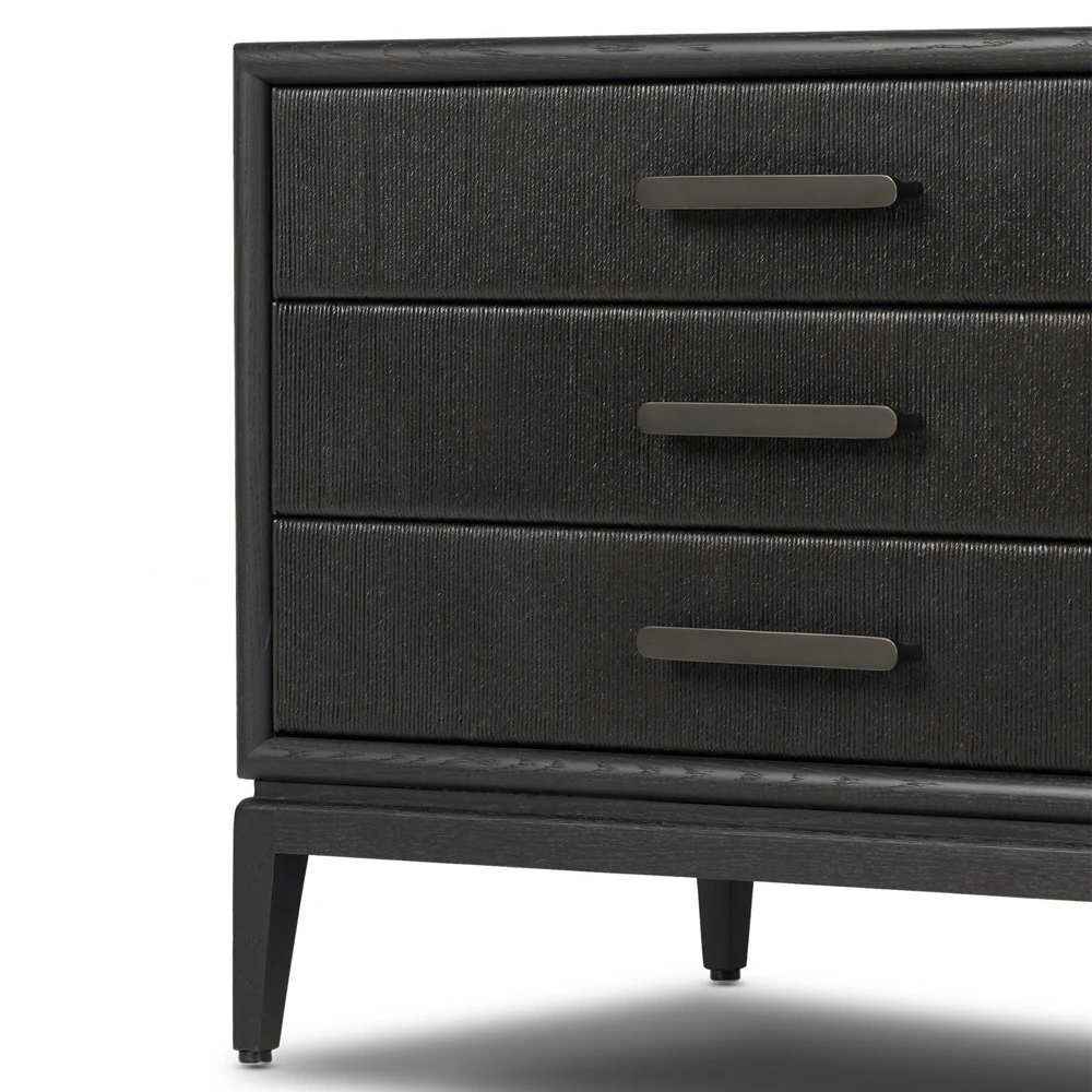 • Features a 3 soft close drawers wrapped in woven paper cord