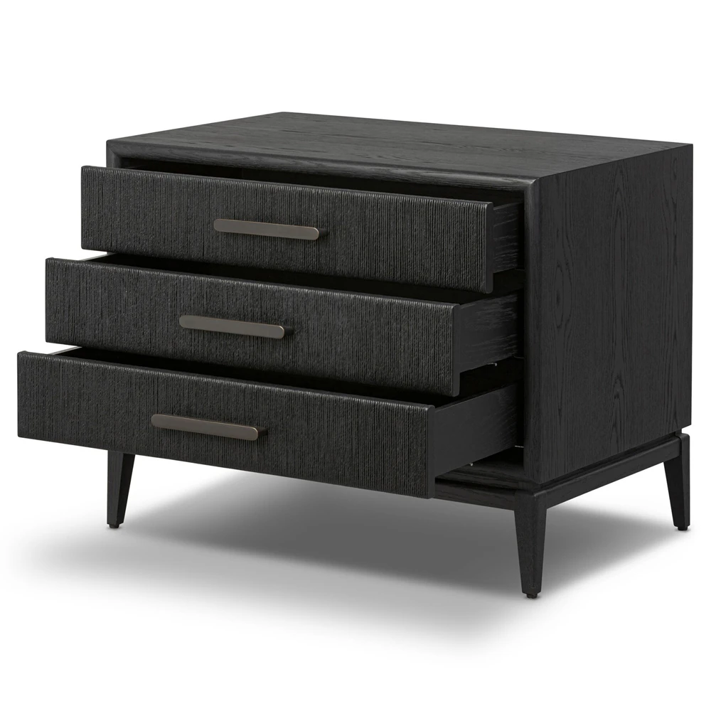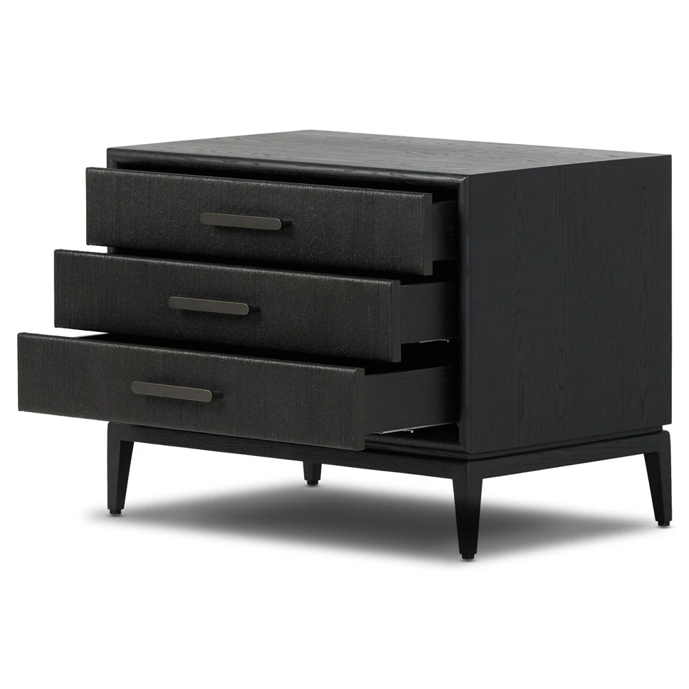 • Minnie Modern Classic Black Oak Wide Nightstand|Kathy Kuo Home