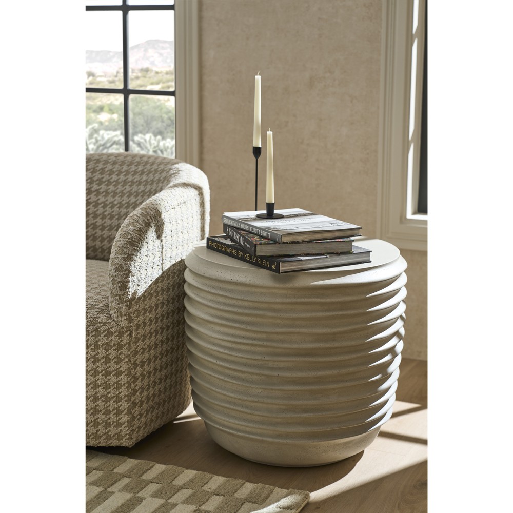 • Annie Modern Classic Round Faceted White Resin Side Table|Kathy Kuo Home