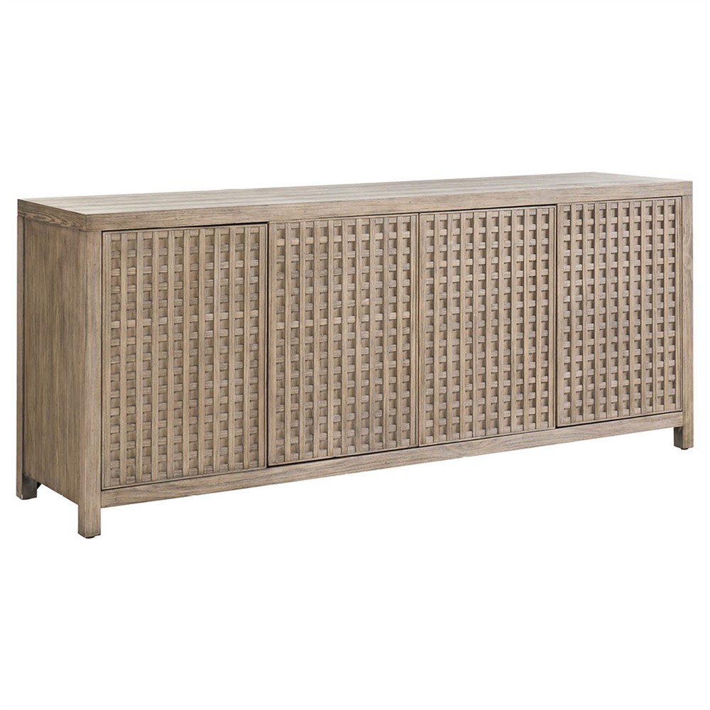 Surfside Coastal Beach Woven Rattan Brown Wood Media Console - 77"