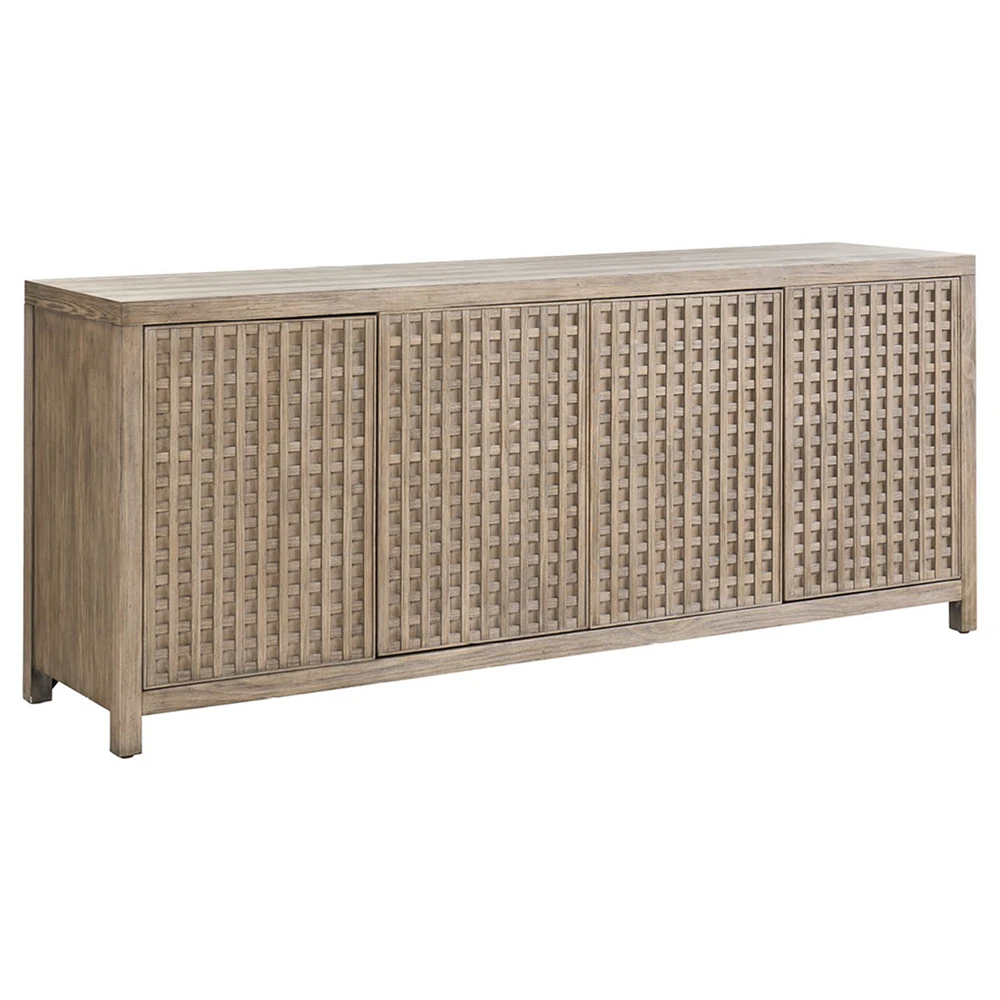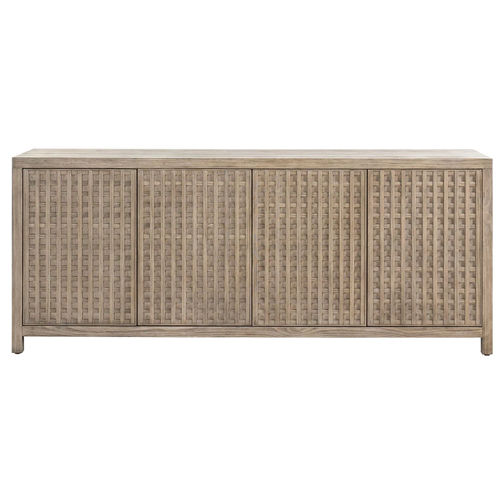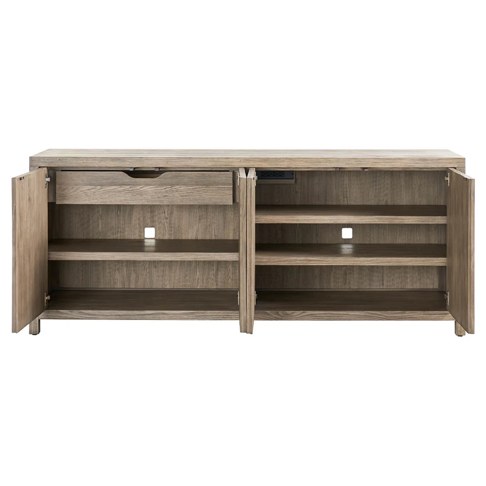 Cayson Coastal Beach Grey Acacia Wood Textured Media Cabinet - 74"