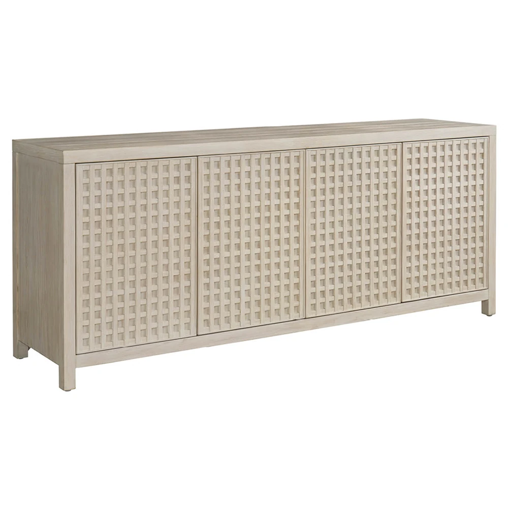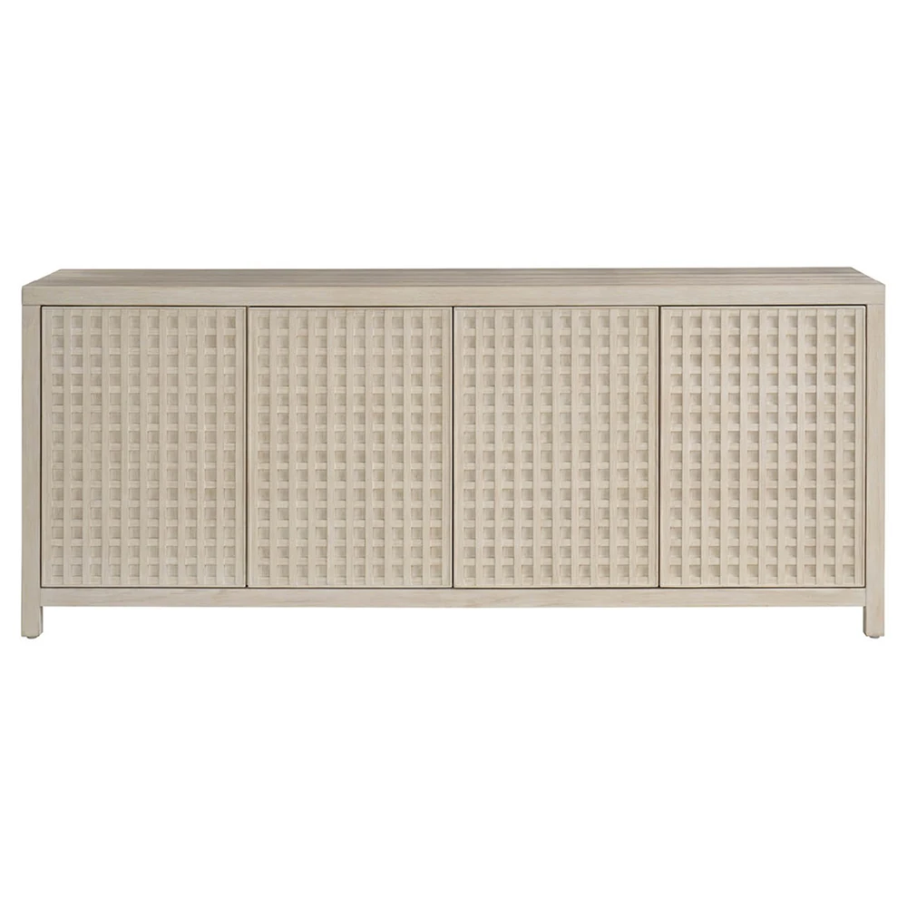 Philip Modern Classic Cream Raffia Mahogany Wood Media Cabinet - 78"