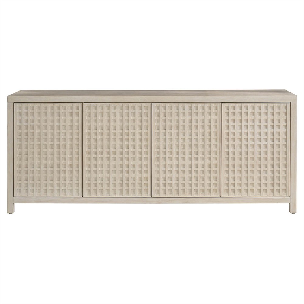 • Surfside Coastal Beach Woven Rattan Brown Wood Media Console - 77"|Kathy Kuo Home