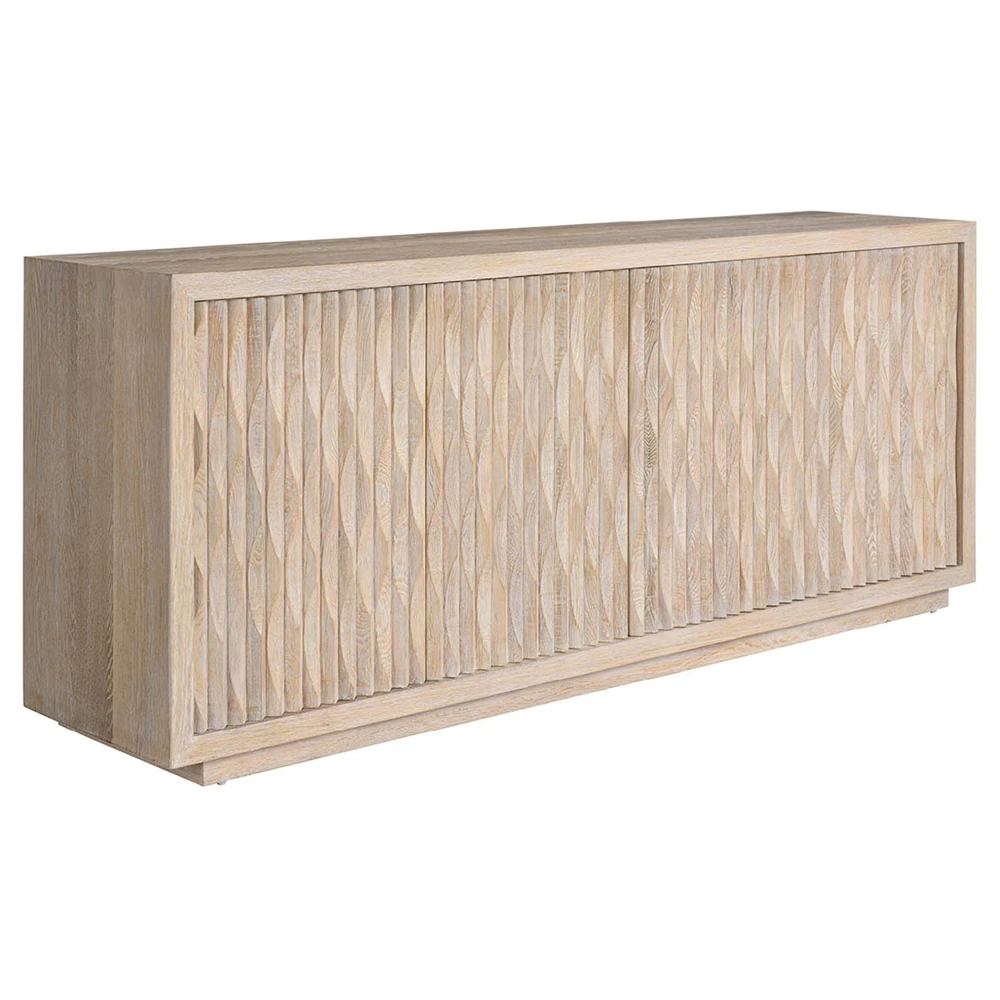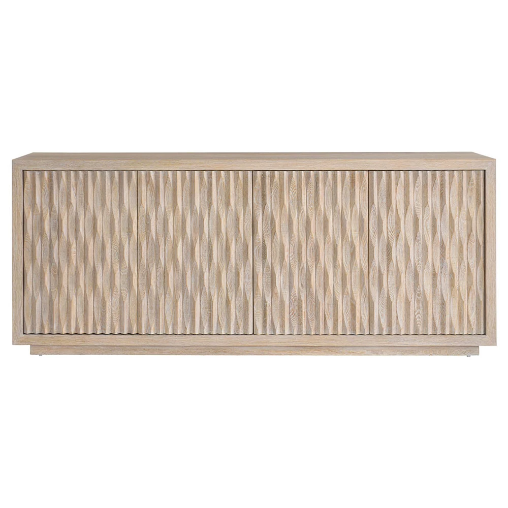 • Cayson Coastal Beach Grey Acacia Wood Textured Media Cabinet - 74"|Kathy Kuo Home