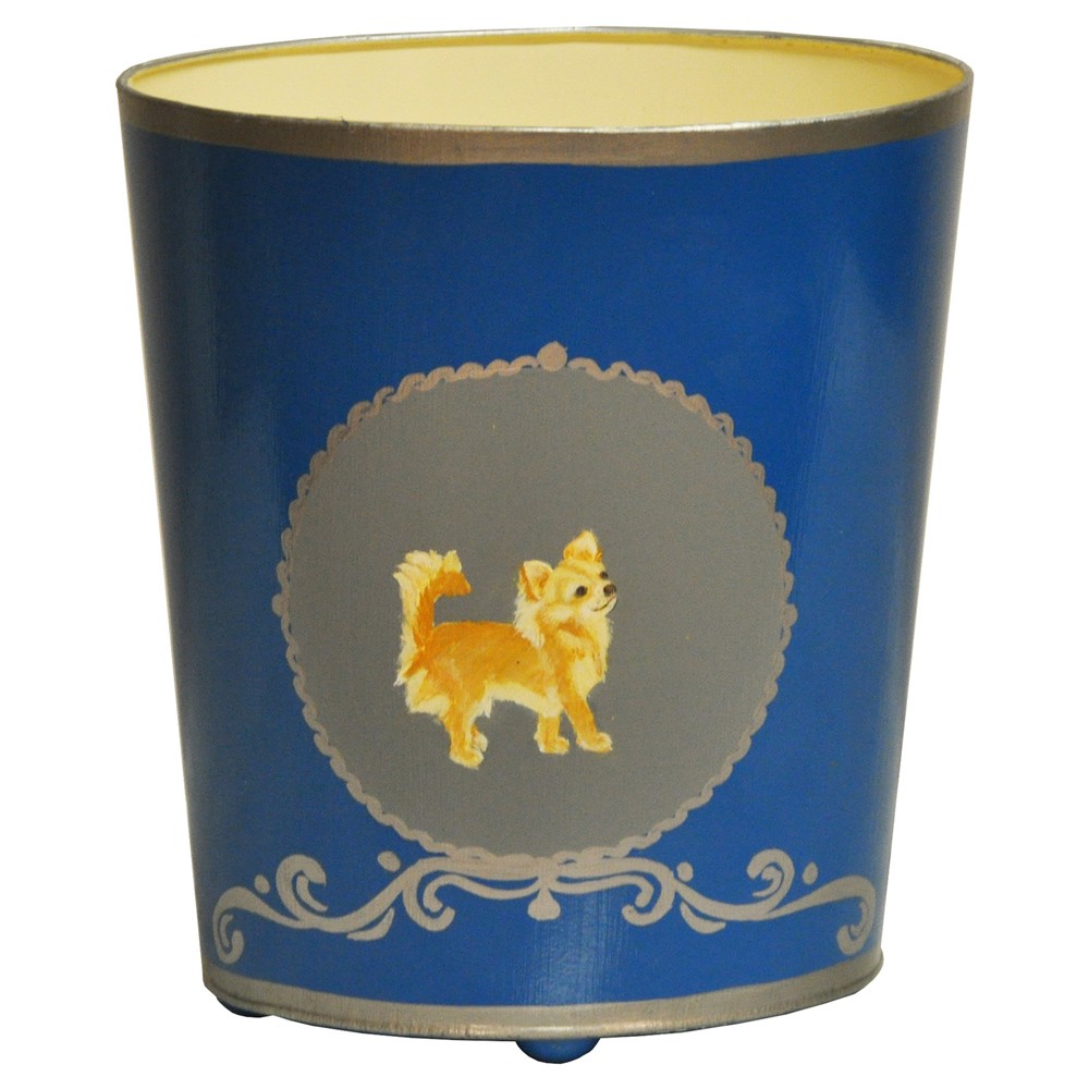 Worlds Away Chihuahua Updated Traditional Blue Waste Basket