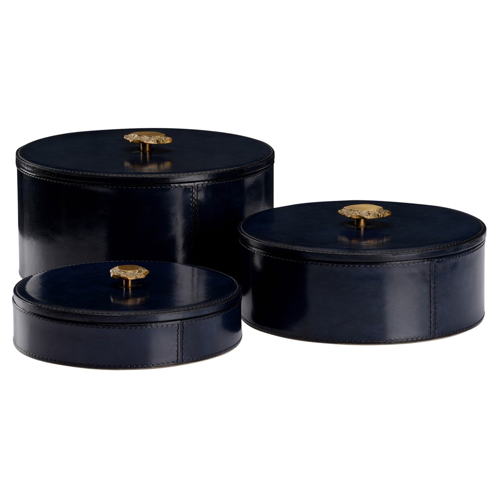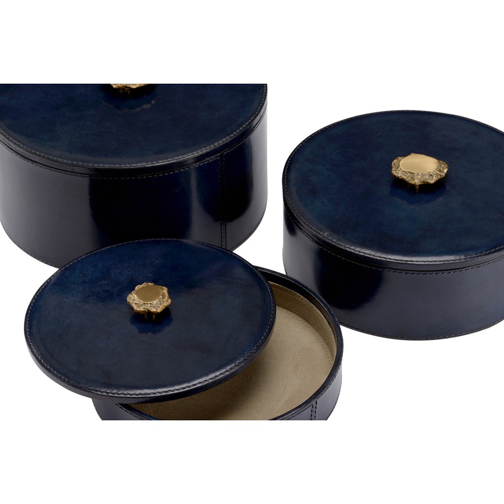 Giani Traditional Blue Leather Round Decorative Box - Set of 3