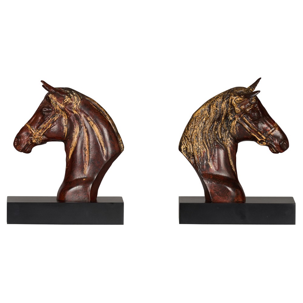 • Norman Regency Antique Gold Leaf Resin Crystal Base Dog Bookends|Kathy Kuo Home