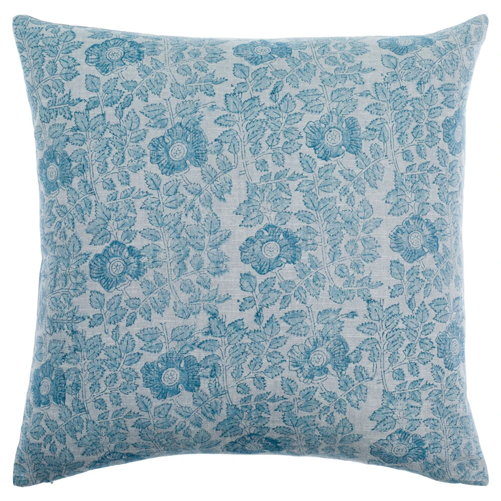 Damian Updated Traditional Blue Linen Floral Throw Pillow - 20x20