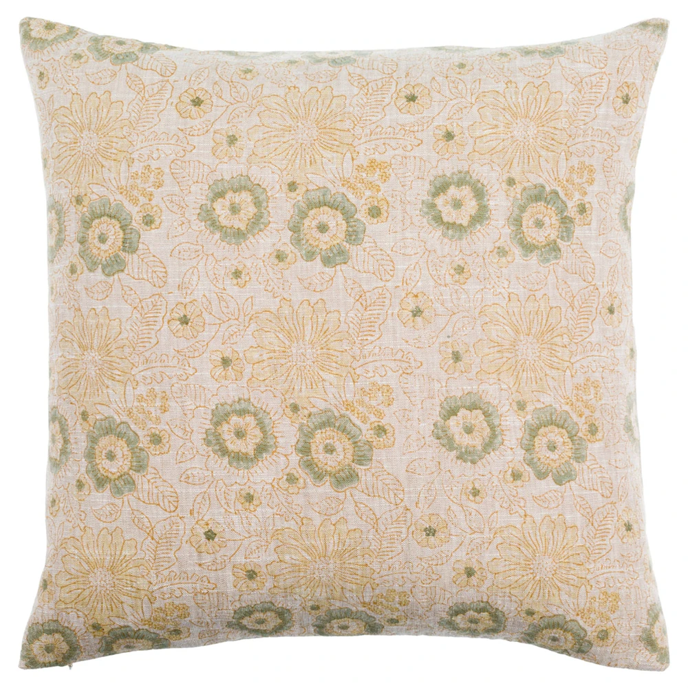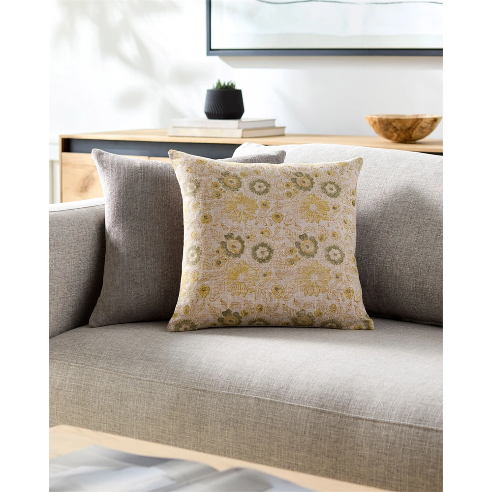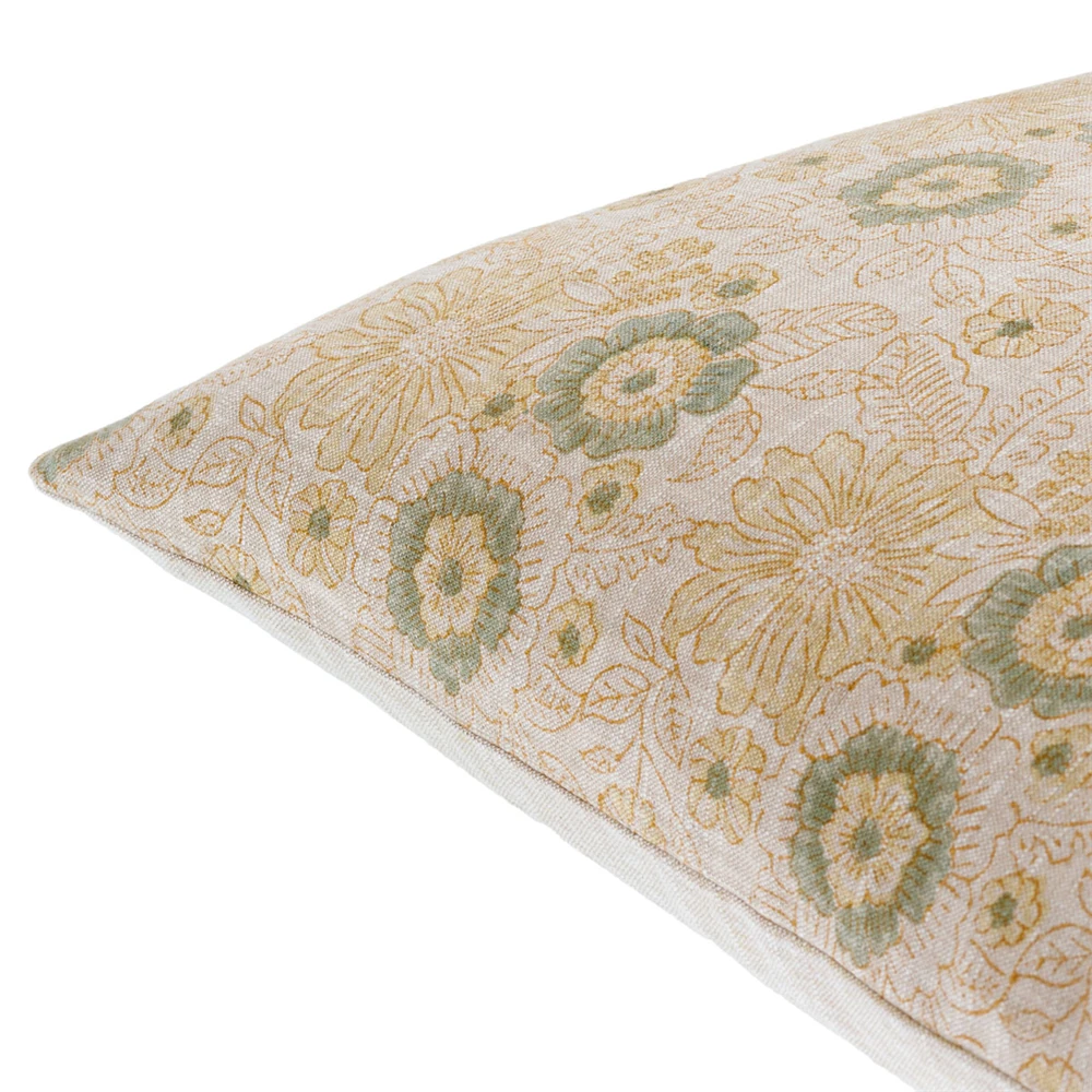 Ophelie Updated Traditional Beige Floral Throw Pillow - 22x22
