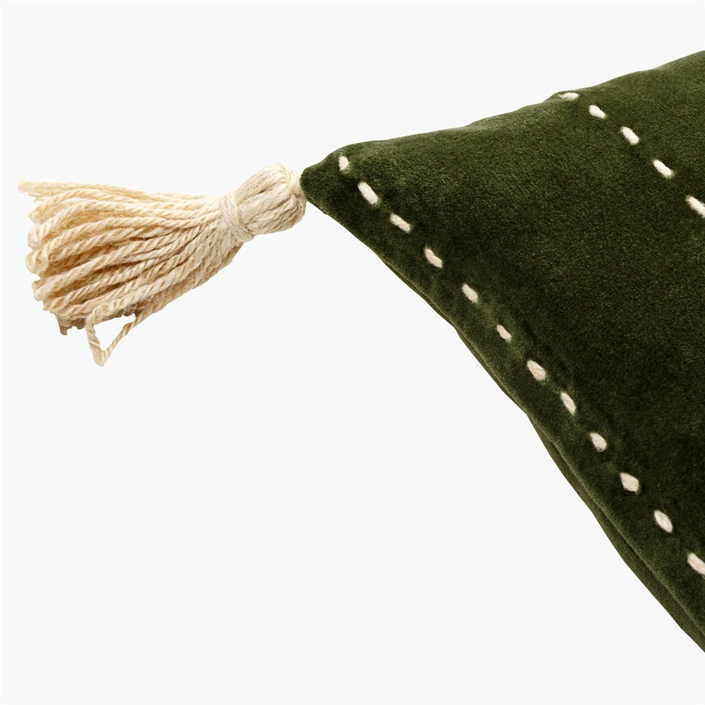 • Anika Modern Classic Green Velvet Flange Down Lumbar Pillow - 13 x 19|Kathy Kuo Home