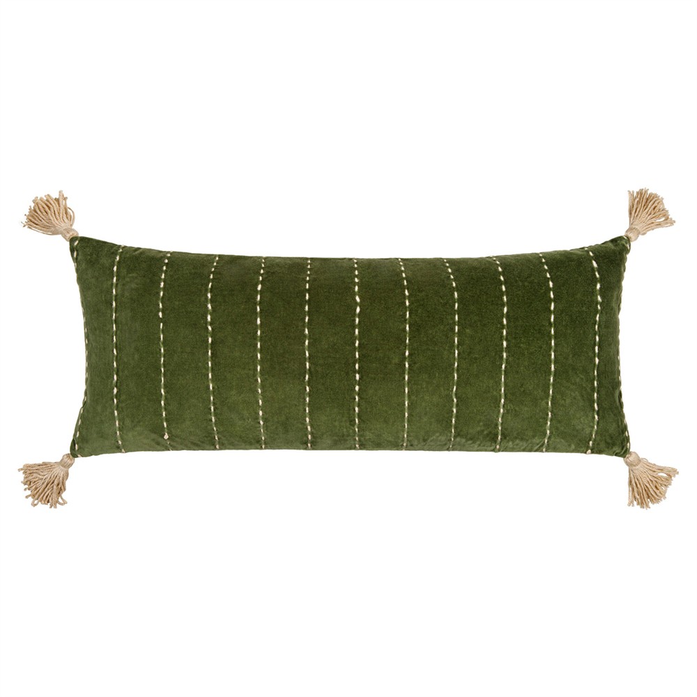Sandor Updated Traditional Green Velvet Lumbar Pillow - 13x36