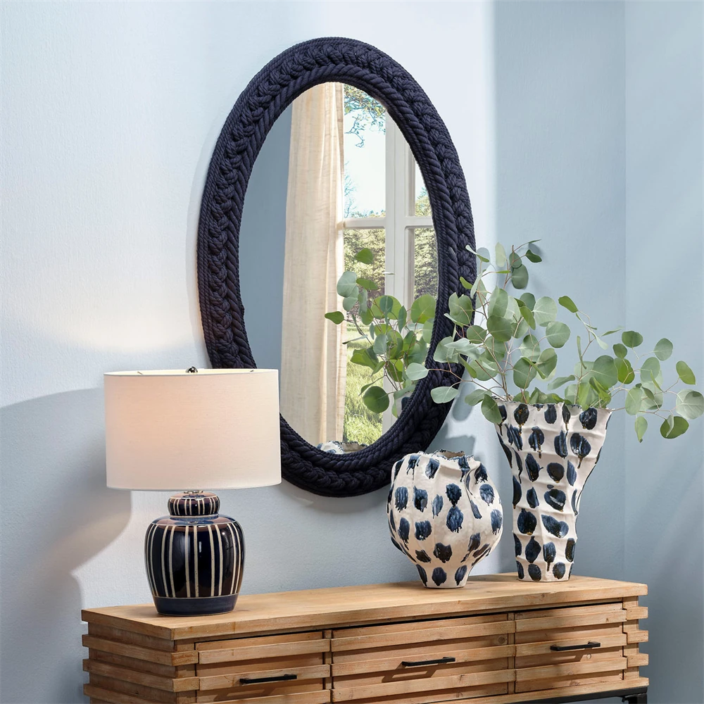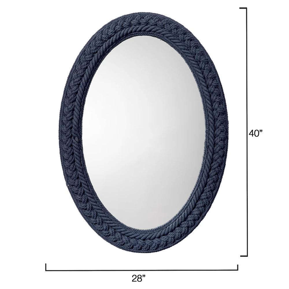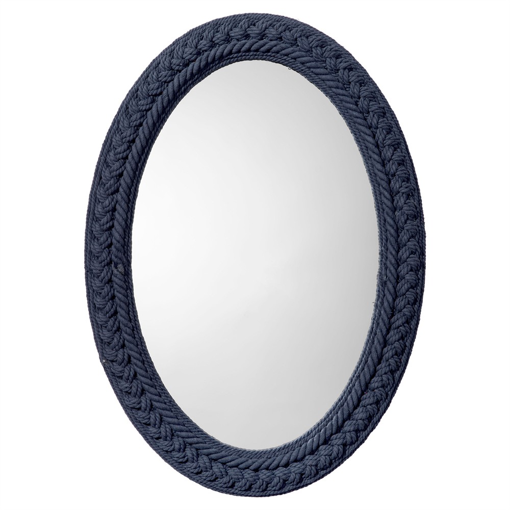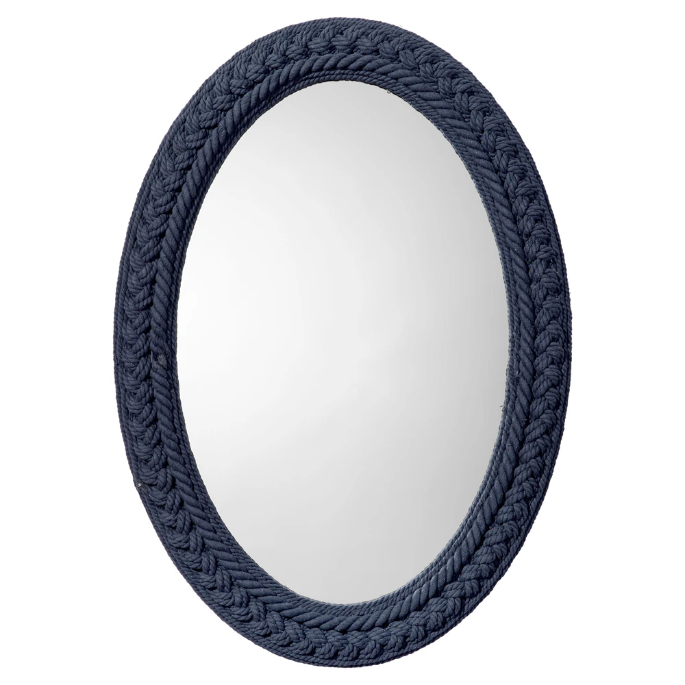 Eula Coastal Beach Indigo Cotton Rope Oval Wall Mirror