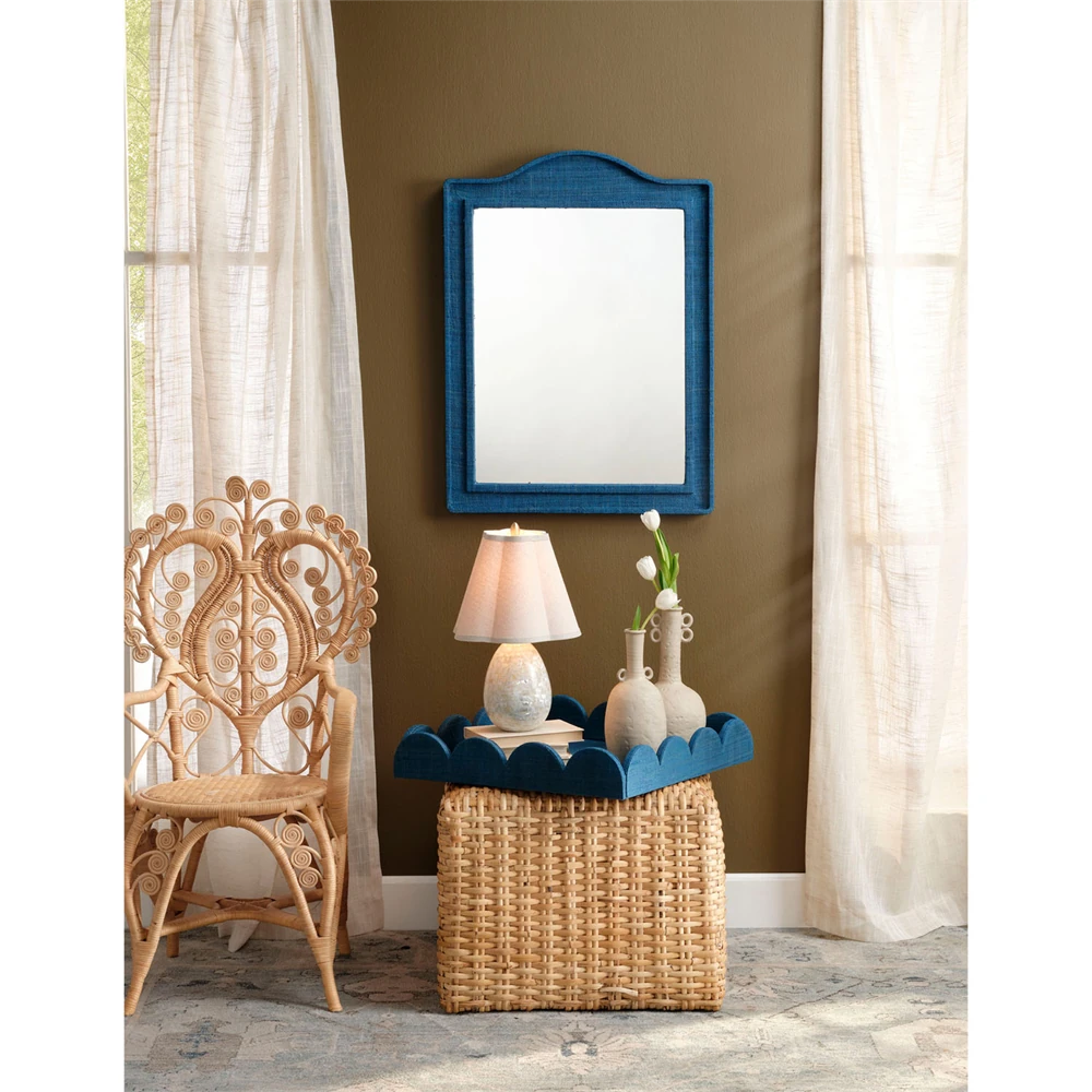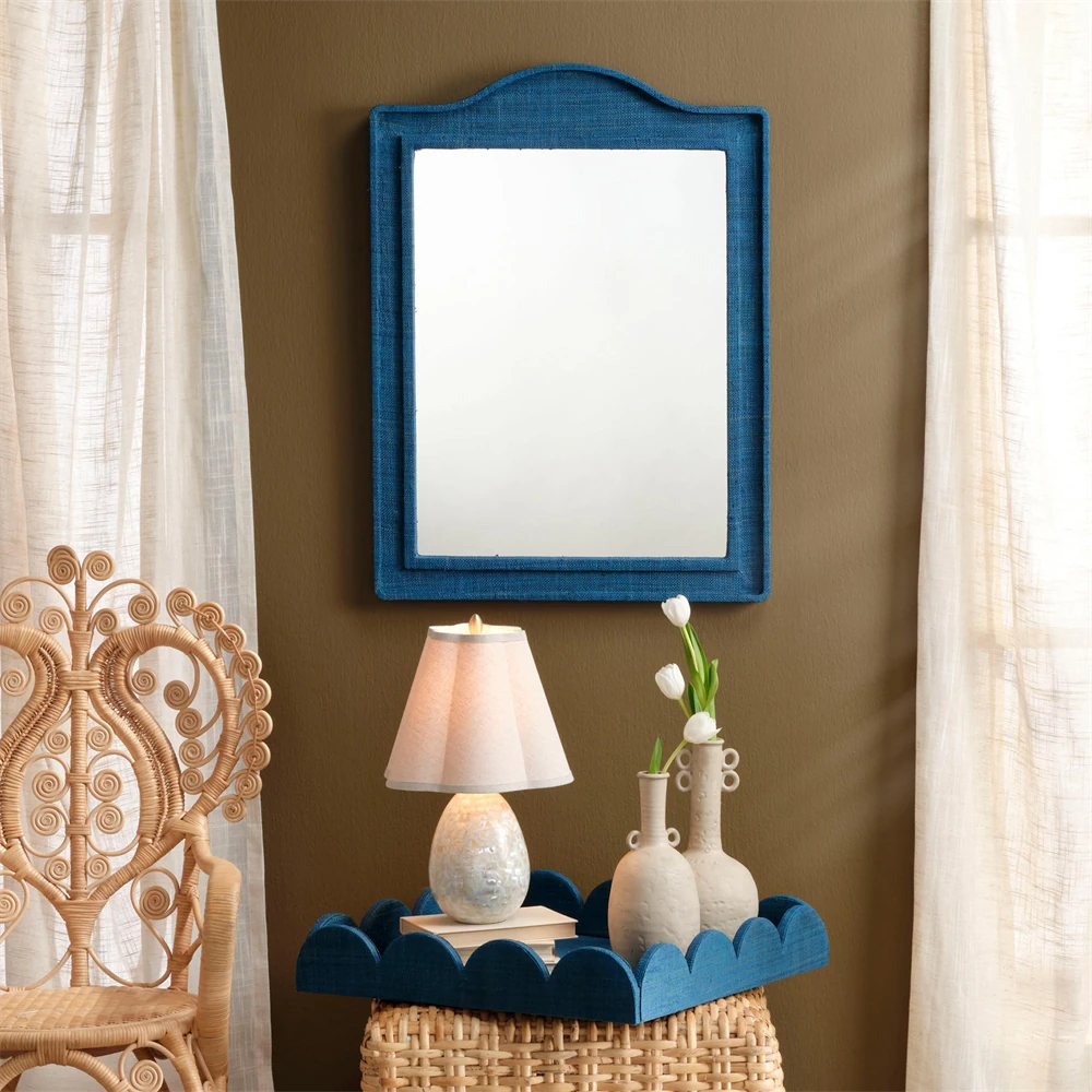 Kingsley Coastal Beach Indigo Blue Raffia Arched Wall Mirror