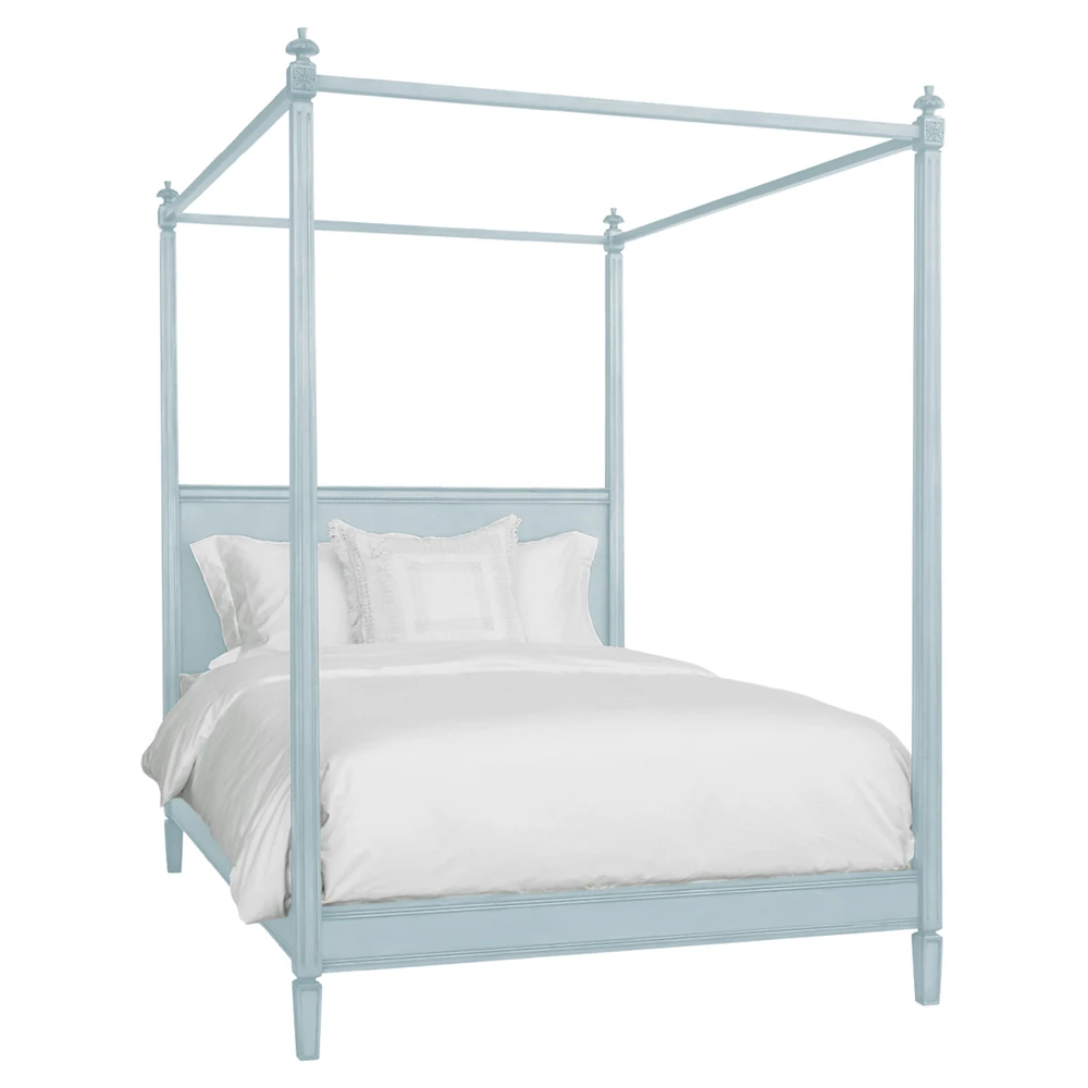 Camilla French Country Light Blue Wood Four Poster Bed - Queen