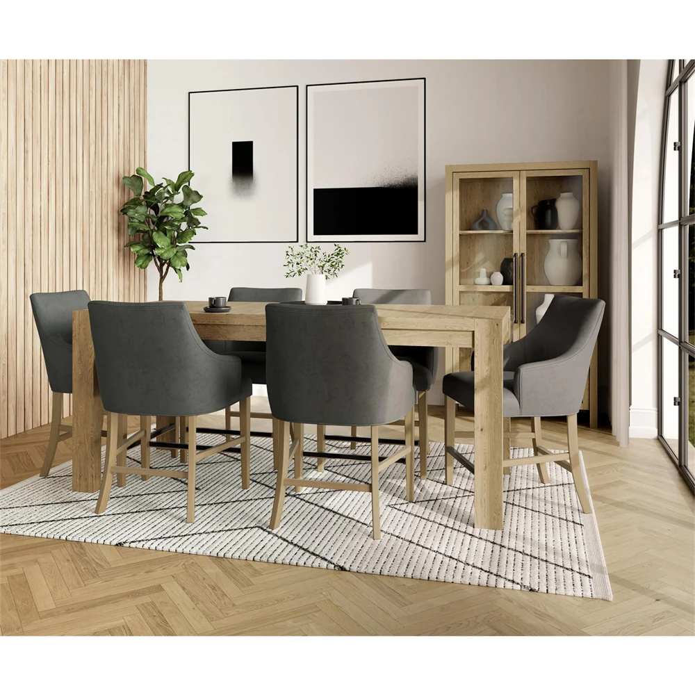 Helena Updated Traditional Grey Oak Round Pedestal Dining Table - 54"