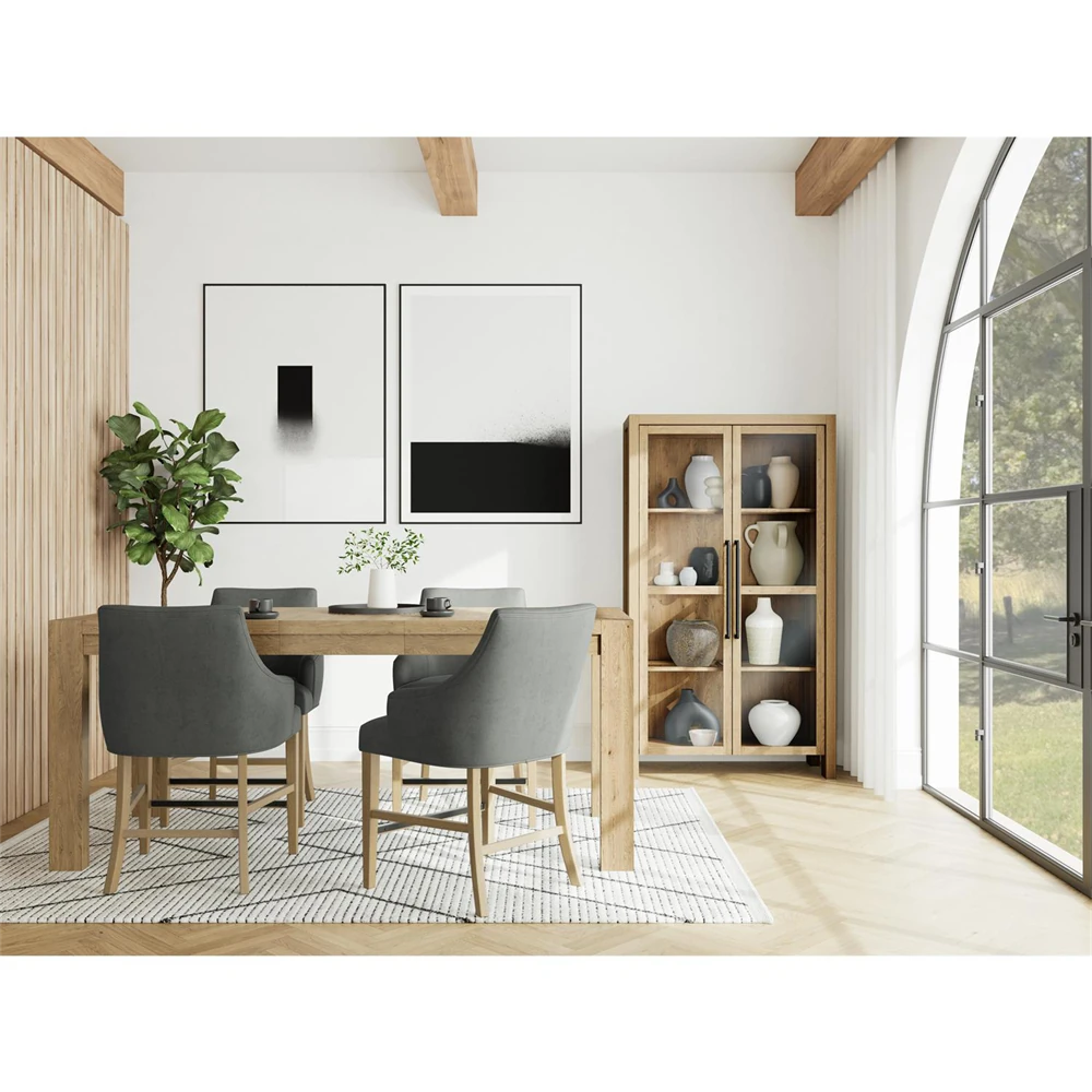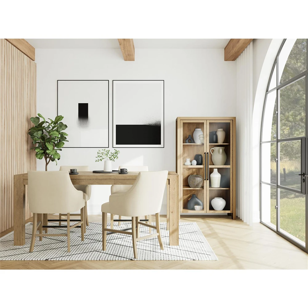 Charles Modern Classic Natural Brown Wood Arched Display Cabinet