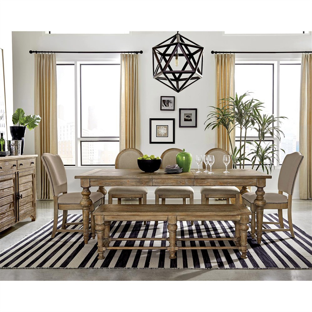 Isabella French Country Brown Pine Rectangular Extendable Dining Table - 66-84"