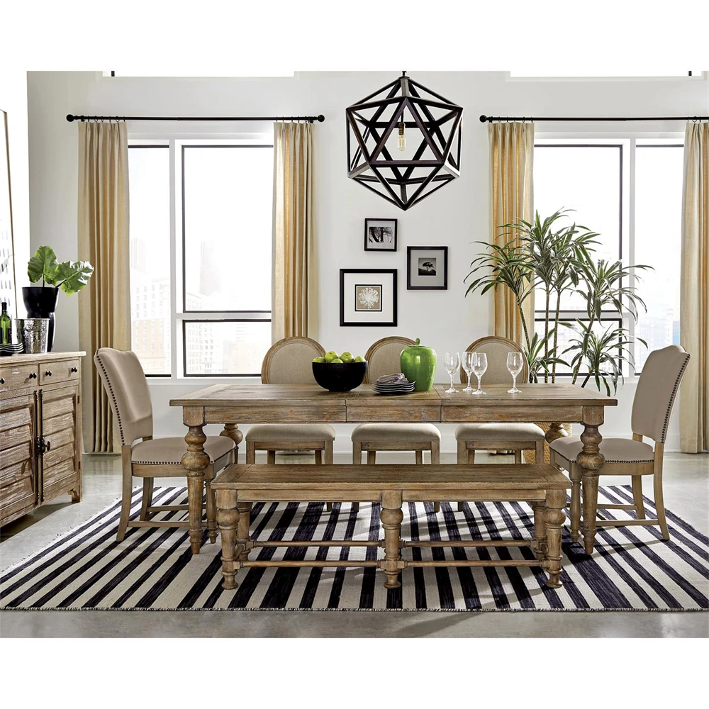 • Isabella French Country Brown Pine Rectangular Extendable Dining Table - 66-84"|Kathy Kuo Home