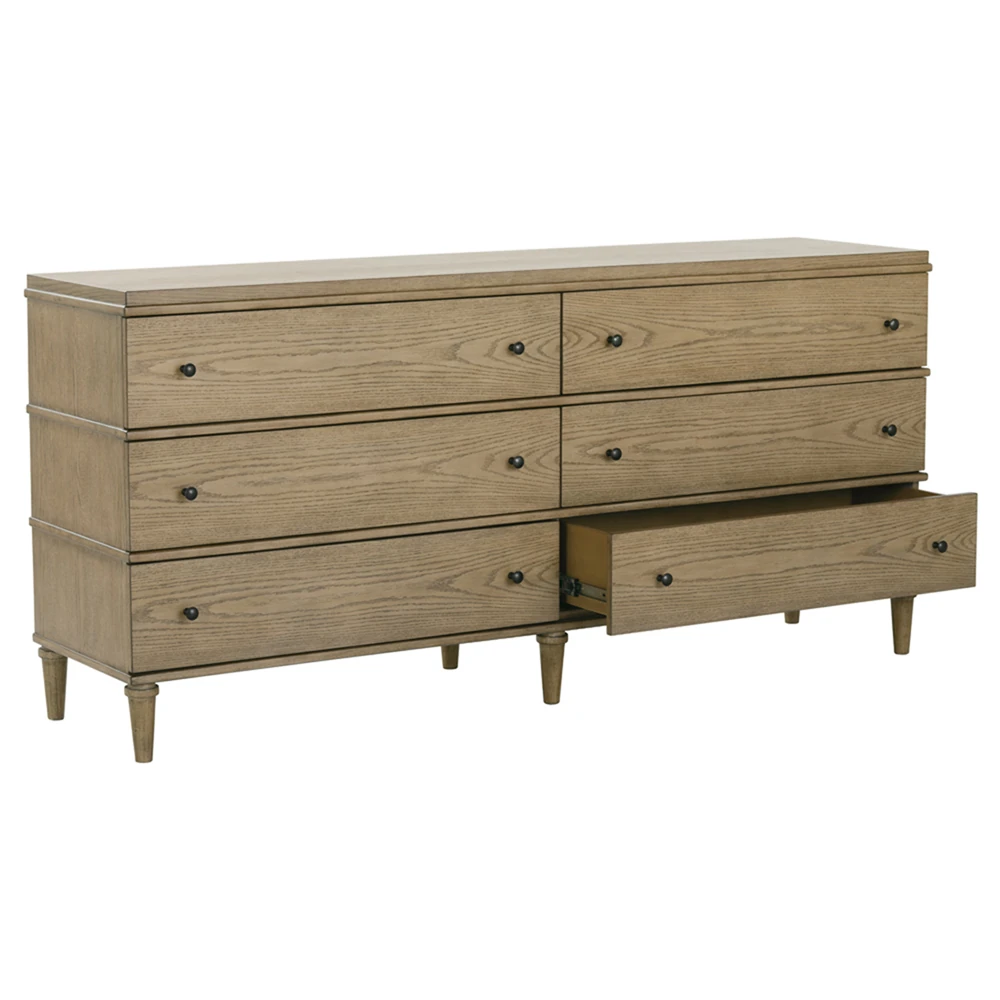 • Andrea French Country Dark Brown Oak Wood Double Dresser|Kathy Kuo Home