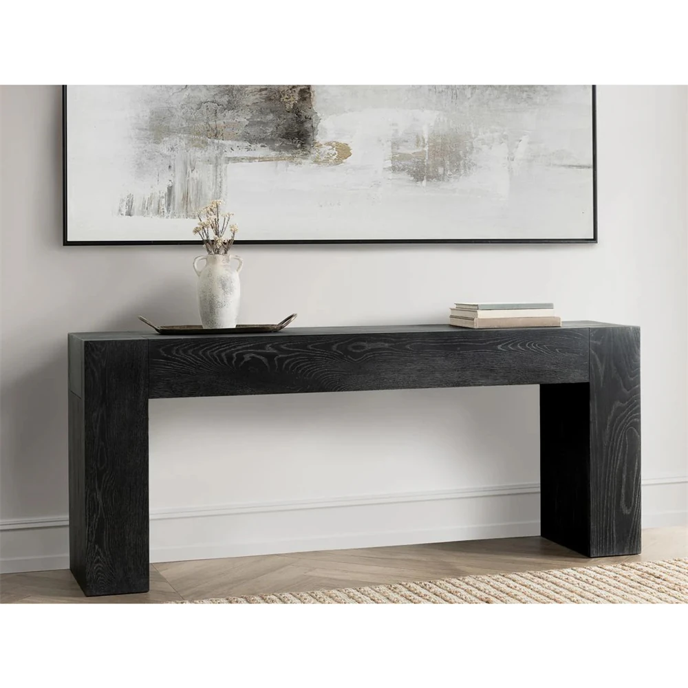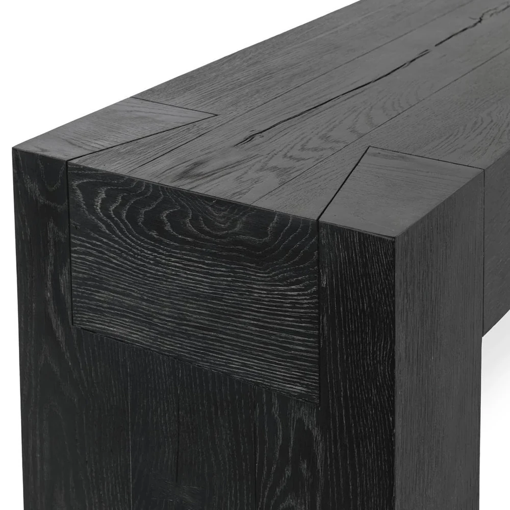 Brissy Rustic Lodge Black Reclaimed Oak Rectangular Console Table