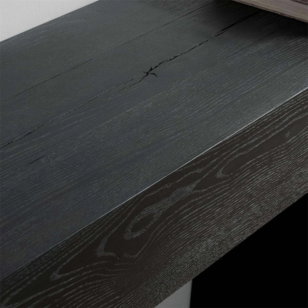 • Features FSC-certified reclaimed oak wood with natural cracks, exposed joinery, and a water-based finish