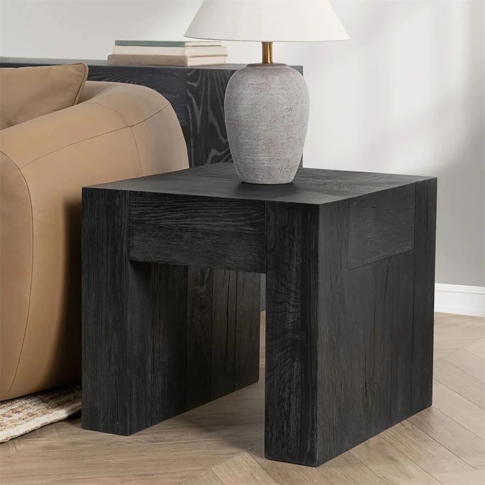 Brissy Rustic Lodge Black Reclaimed Oak Square End Table