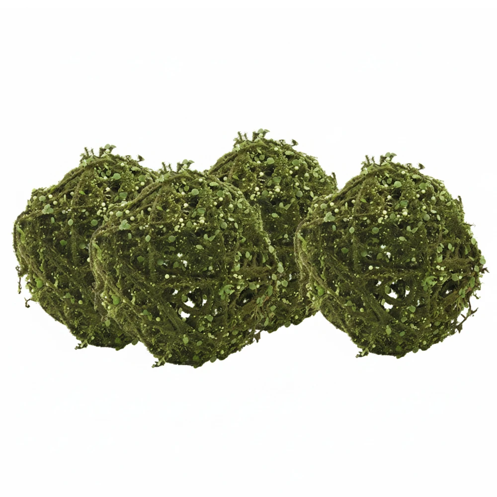 Galen Updated Traditional Green Faux Rattan Moss Ball - Set of 4