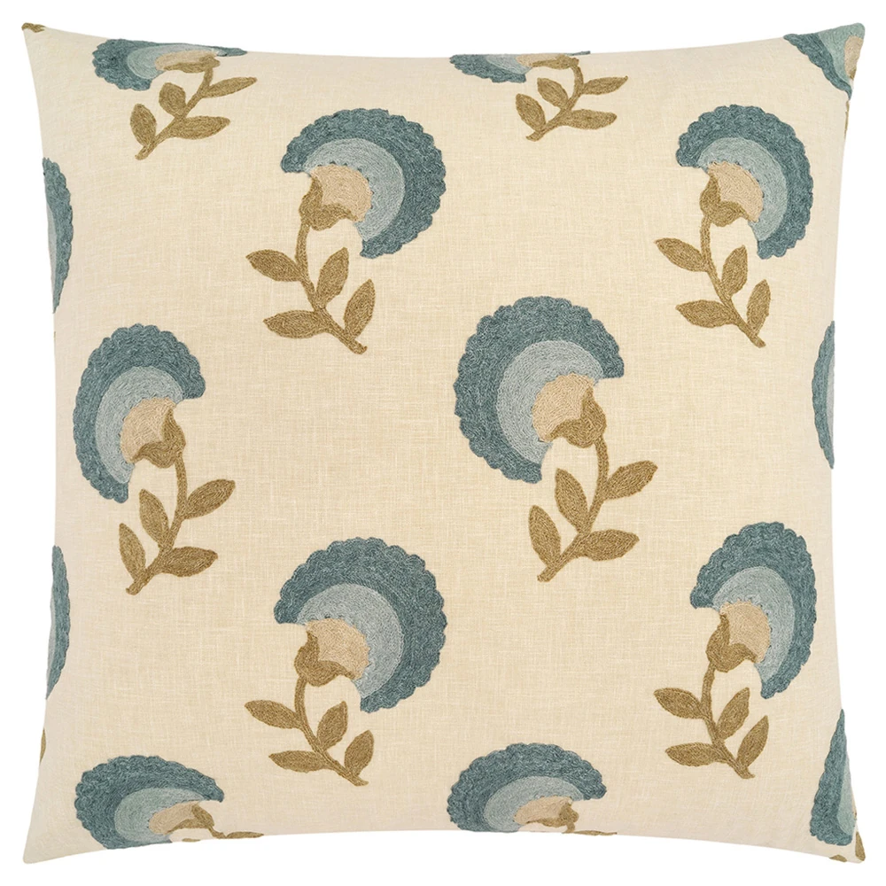 • Victoire Updated Traditional Pine Cotton Floral Throw Pillow - 22x22|Kathy Kuo Home