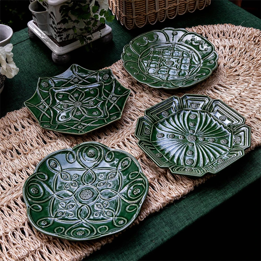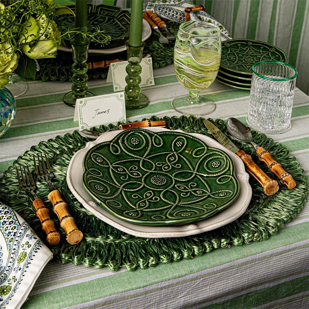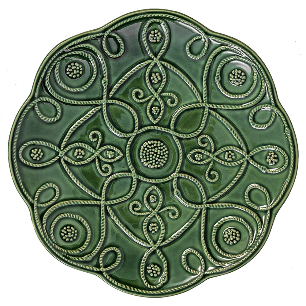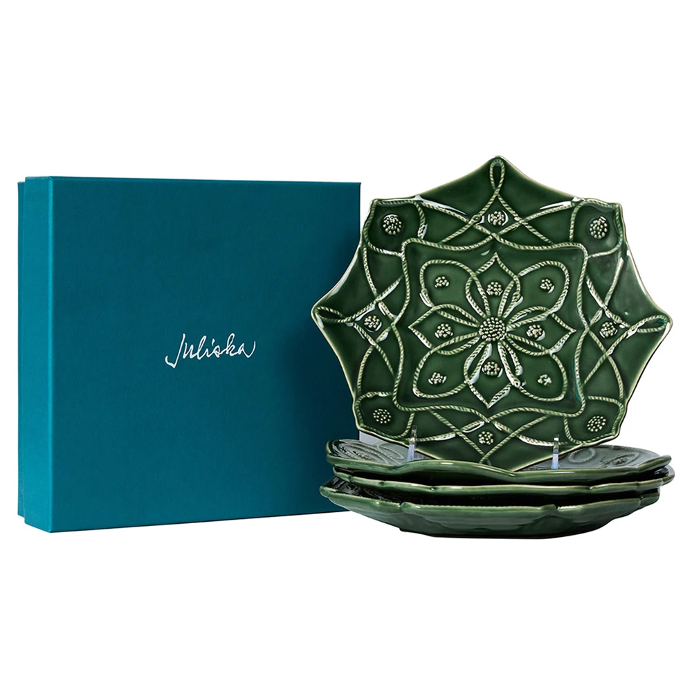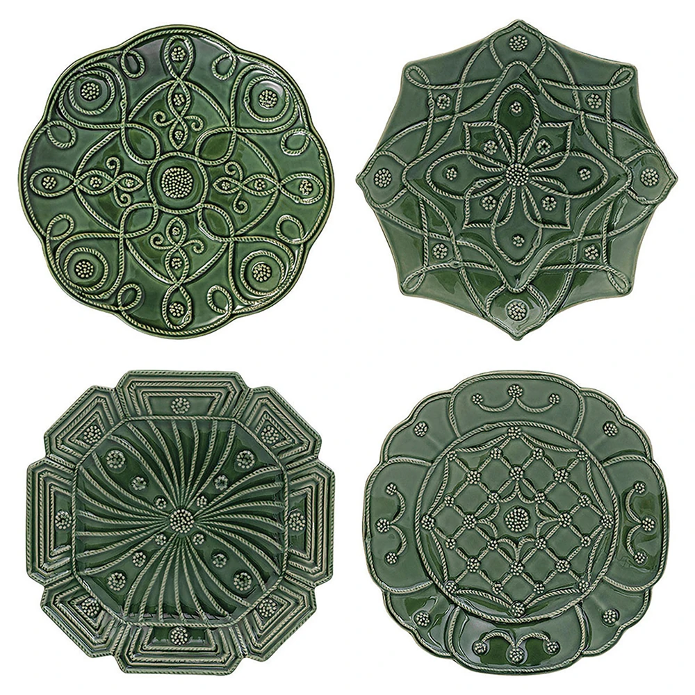 • Juliska Country Estate Winter Frolic Evergreen Ceramic Party Plate - Set of 4|Kathy Kuo Home