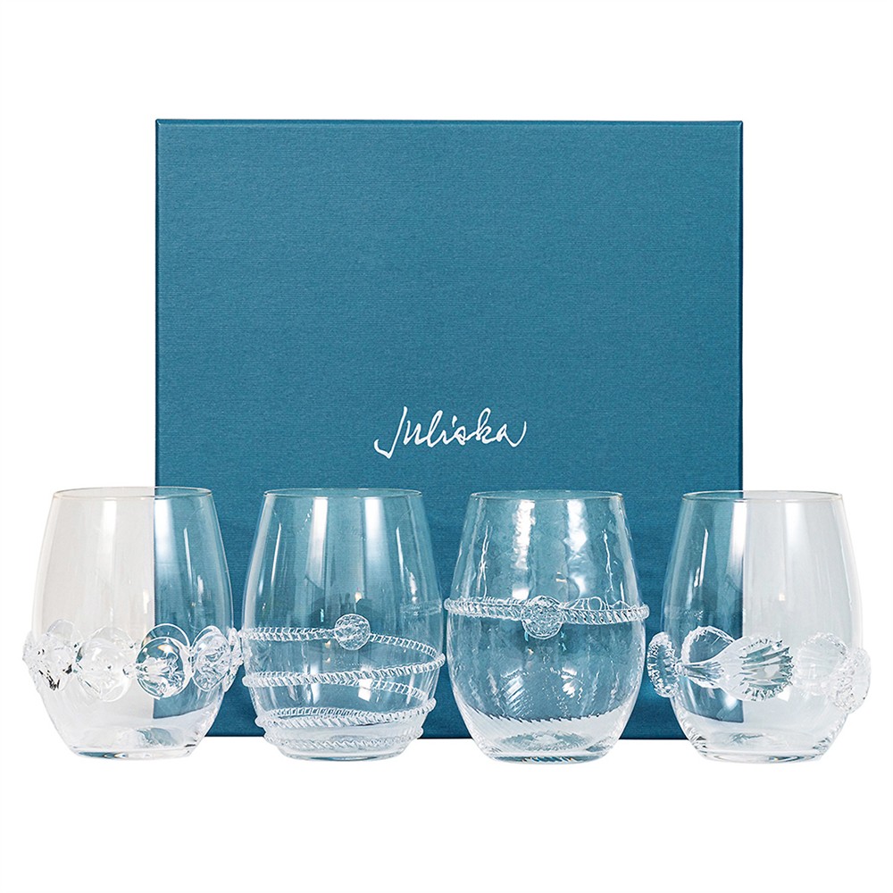 Juliska Heritage Traditional Clear Stemless Bohemian Wine Glass - Set of 4