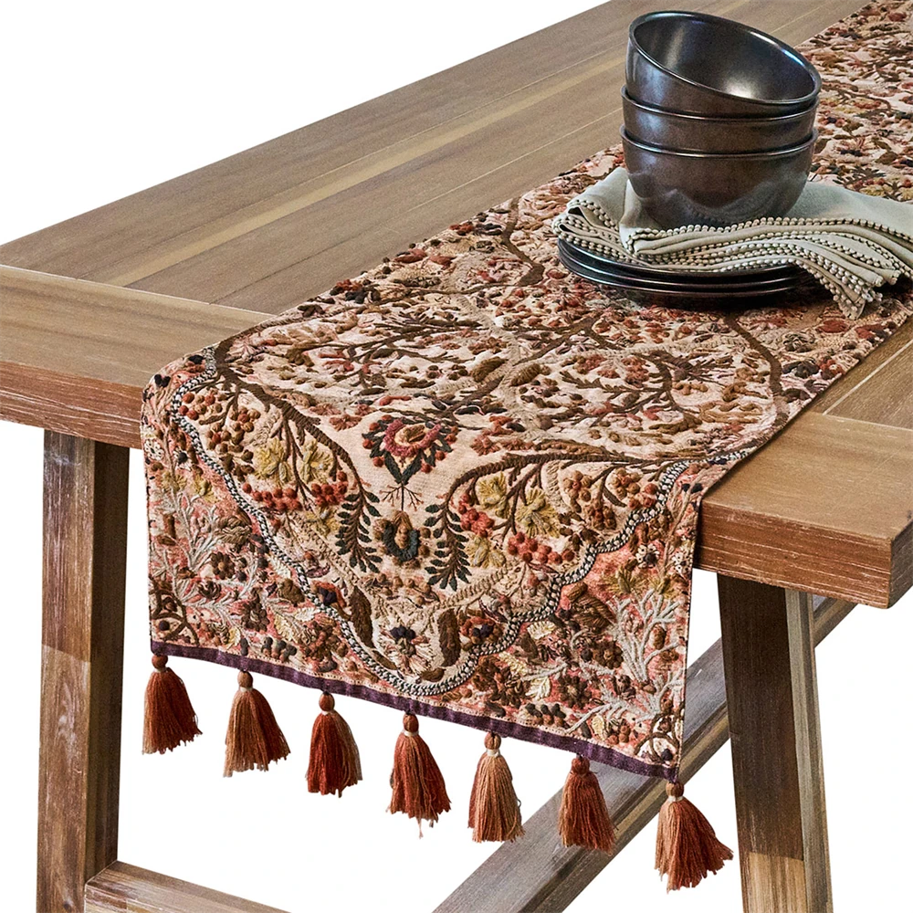 Juliska Willa French Country Amber Embroided Cotton Table Runner