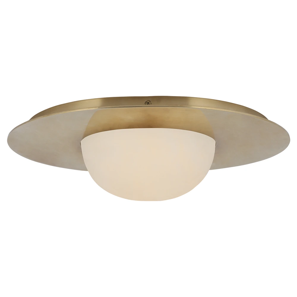 • Visual Comfort Formosa Modern White Alabaster Antique Burnished Brass Flush Mount - 17"|Kathy Kuo Home