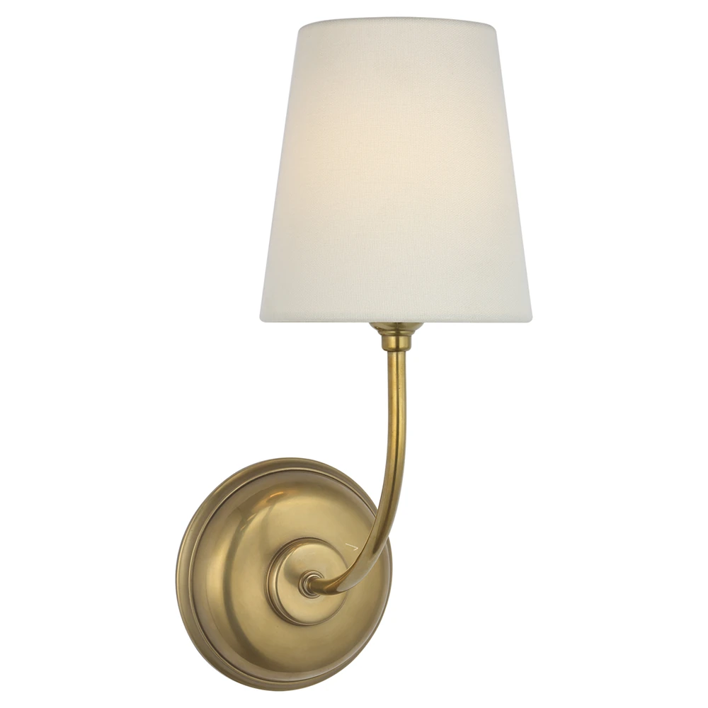 Visual Comfort Vendome Modern Antique Brass Linen Shade Single Armed Wall Sconce