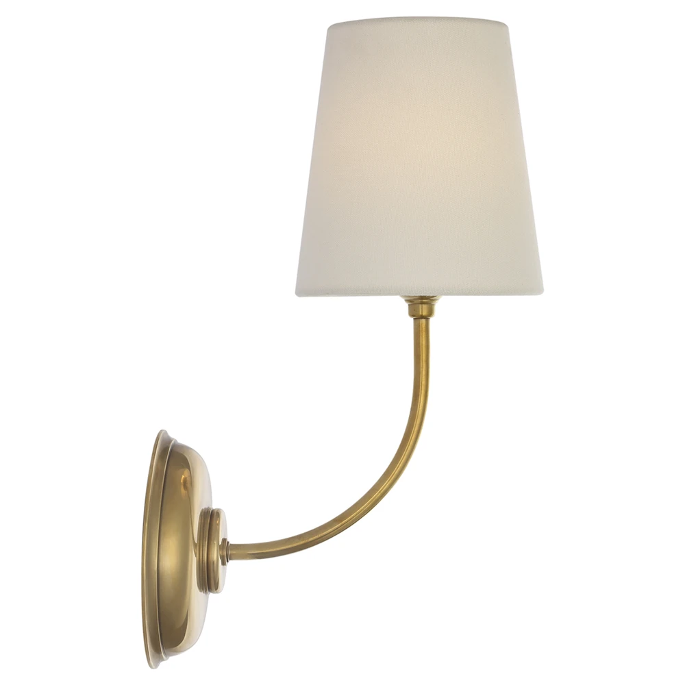 • Visual Comfort Lyndsie Traditional Linen Shade Antique Brass Armed Sconce|Kathy Kuo Home