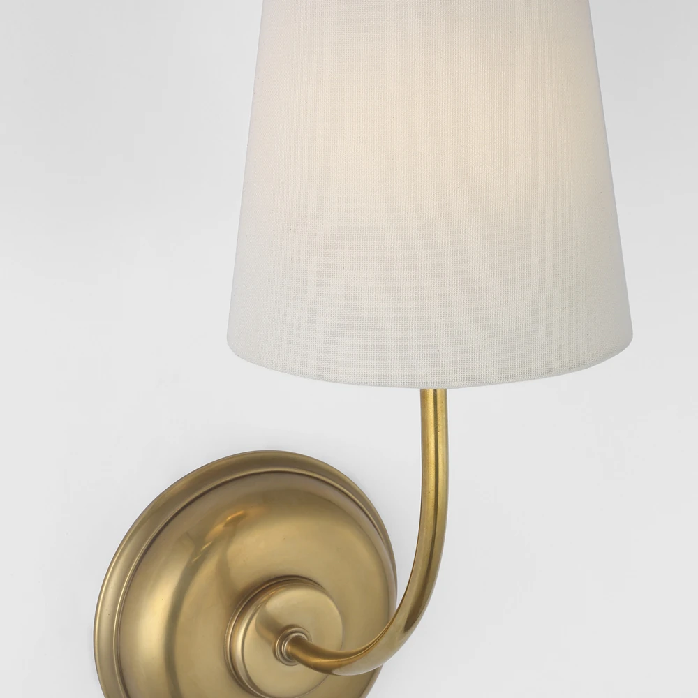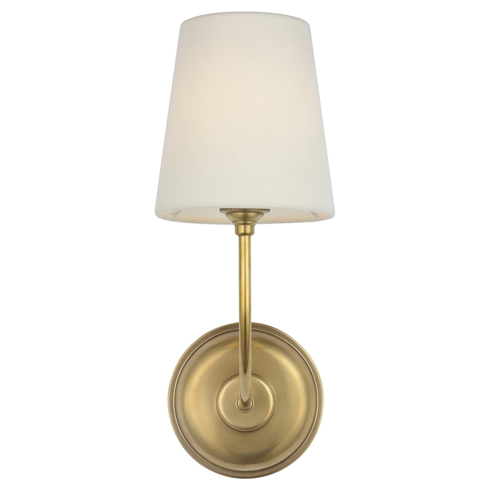 • Visual Comfort Vendome Modern Antique Brass Linen Shade Single Armed Wall Sconce|Kathy Kuo Home